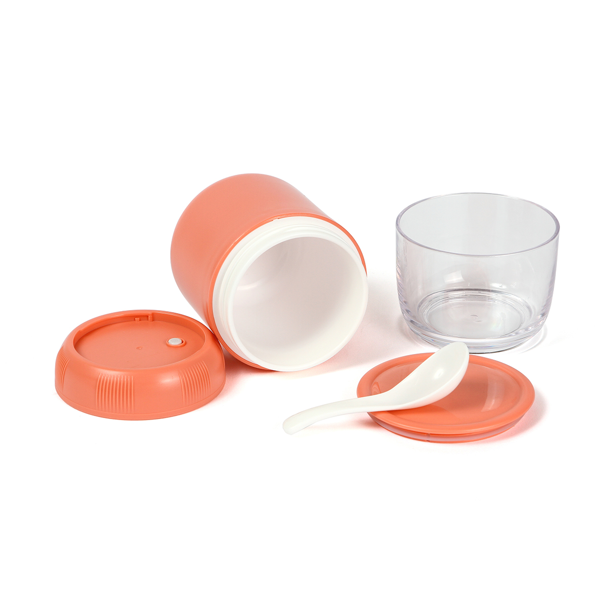 Contenedor Grimsby. - Contenedor de alimentos fabricado en polipropileno (PP). Incluye dos recipientes pequeños, uno de ellos traslúcido y una cuchara. Capacidad por ambos contenedores es de 710 ml.