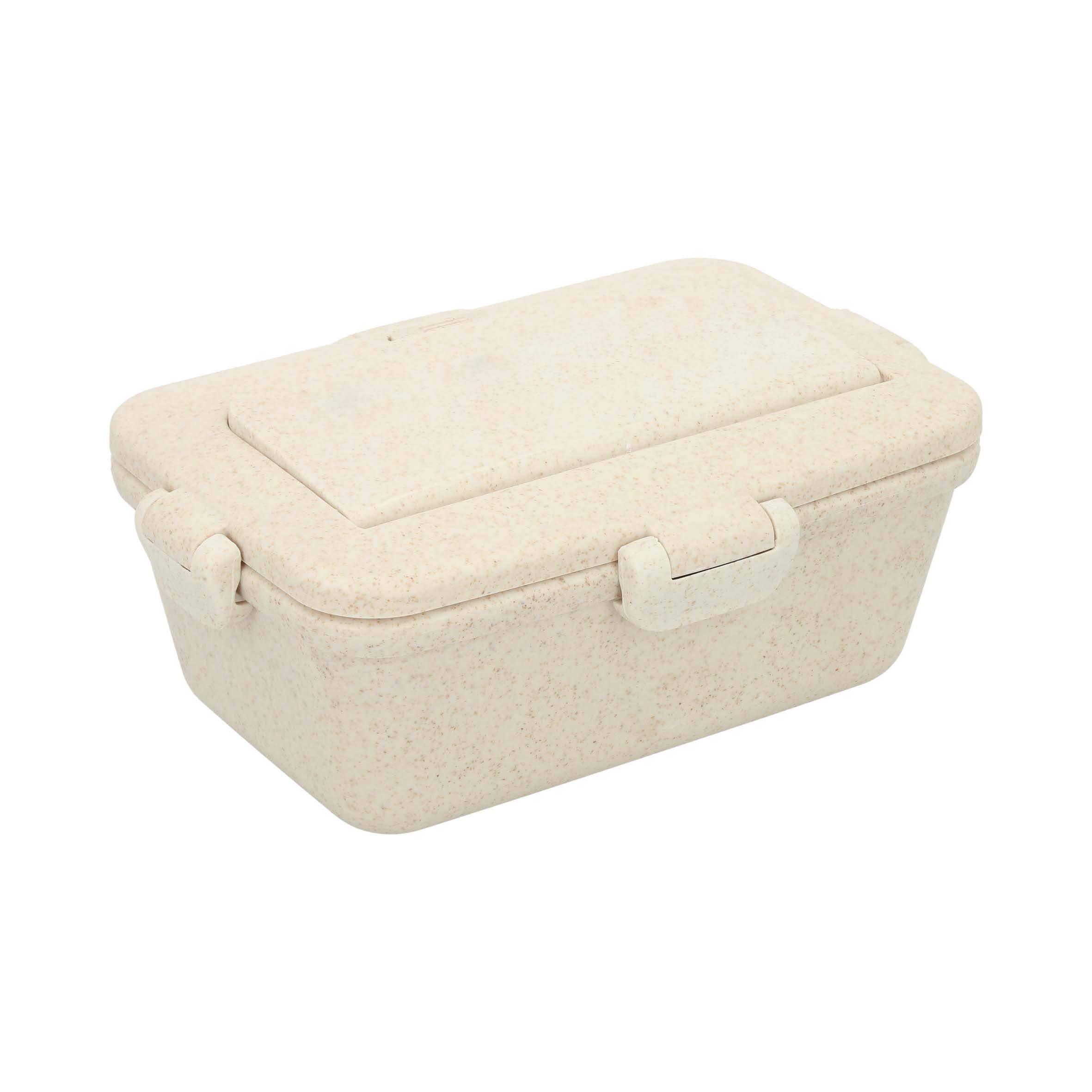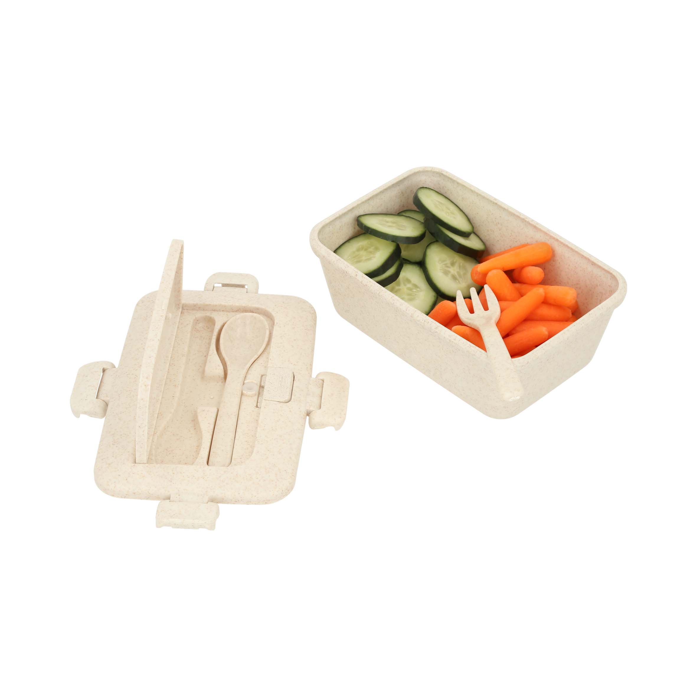 CHILI Contenedor para alimento de wheat straw, con clip de seguridad, compartimento superior para cubiertos y soporte para celular. Incluye tenedor y cuchara.