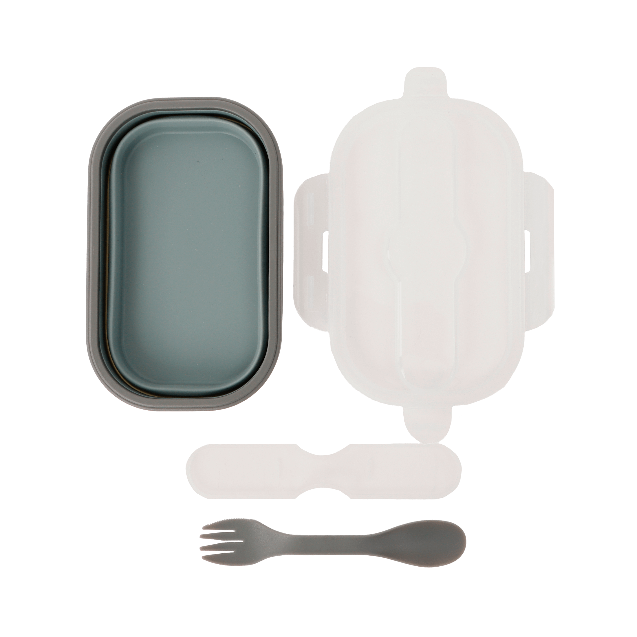 TARTA Contenedor de alimentos de silicón plegable con cierre hermético y utensilios.