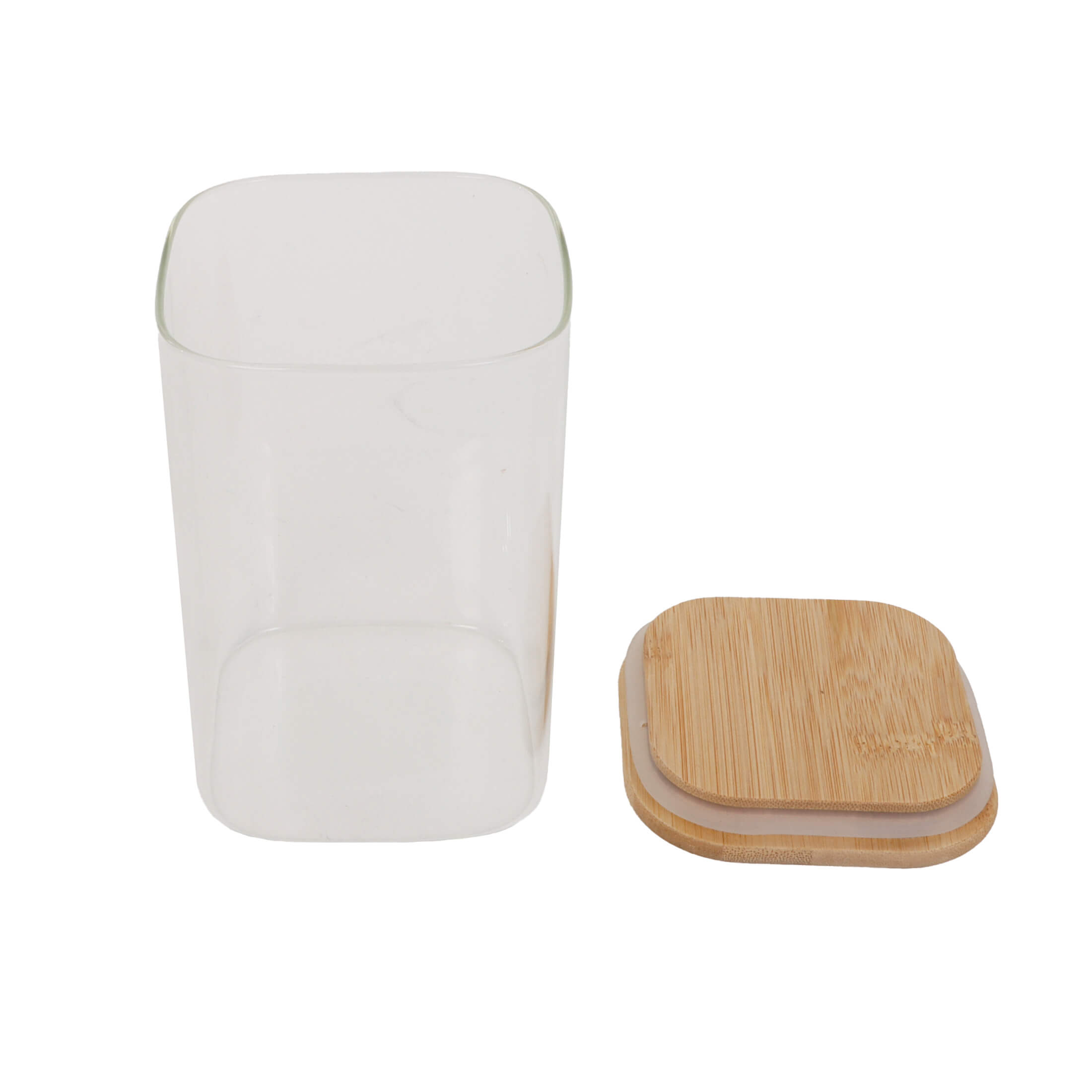 TEFF Recipiente de vidrio transparente con tapa de bambú.