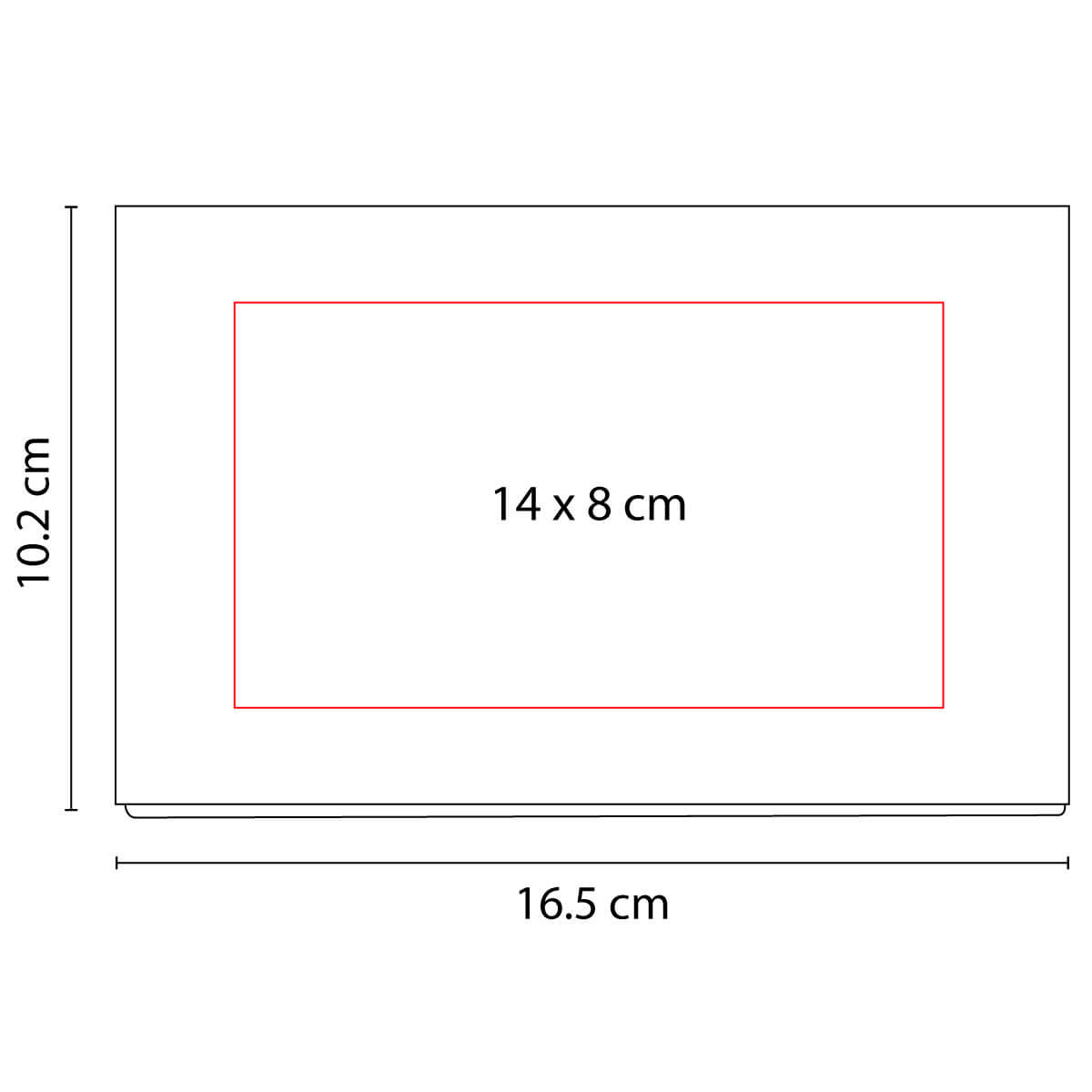 MATERIAL: Cartón / Papel / Plástico MEDIDAS: 16.5 x 10.2 cm IMPRESION: Serigrafía MED. EMPAQUE: 37 x 25.5 x 33 cm PESO EMPAQUE: 8.7 Kg PIEZAS EMPAQUE: 60