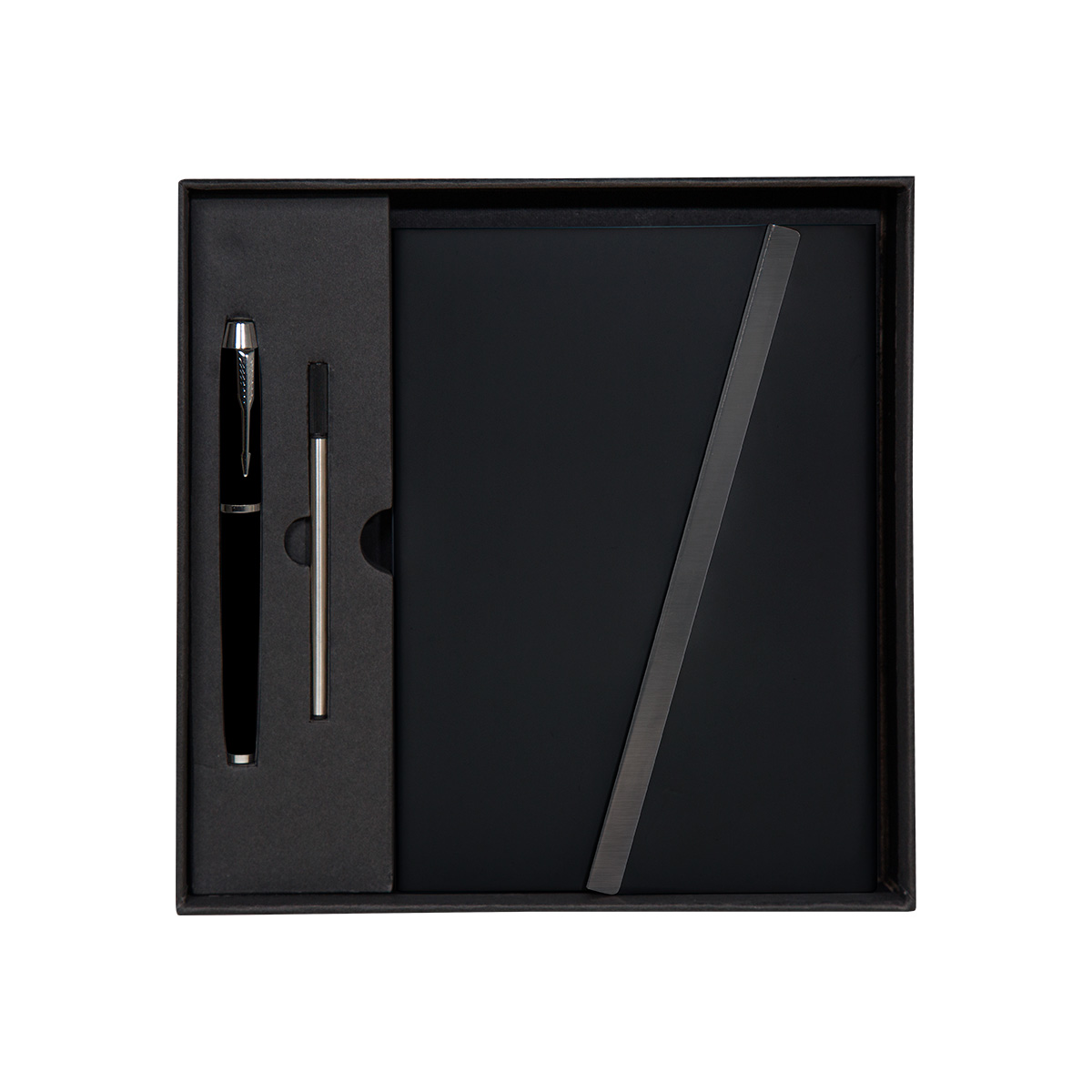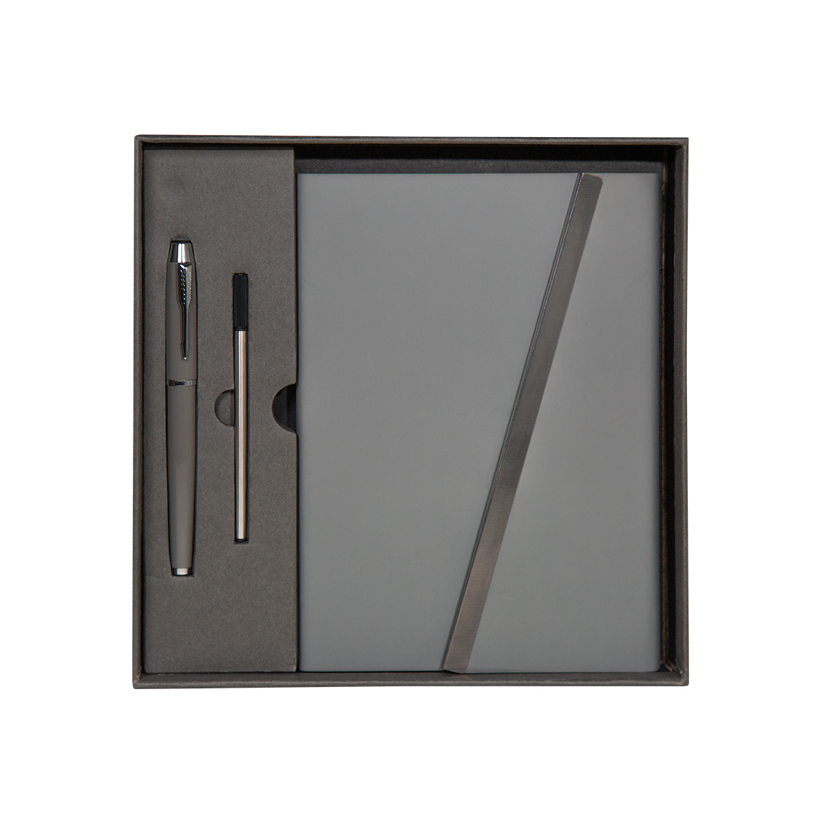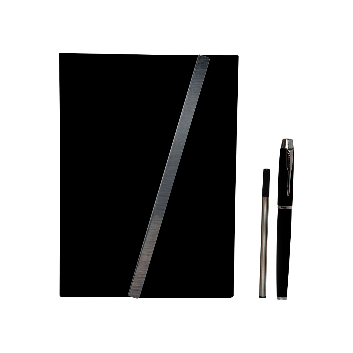 SET DE LIBRETA JINSEI - Set de regalo que incluye una libreta de 80 hojas a rayas, con pasta rígida y solapa magnética, un bolígrafo metálico y un repuesto de tinta adicional. Caja de regalo incluida.