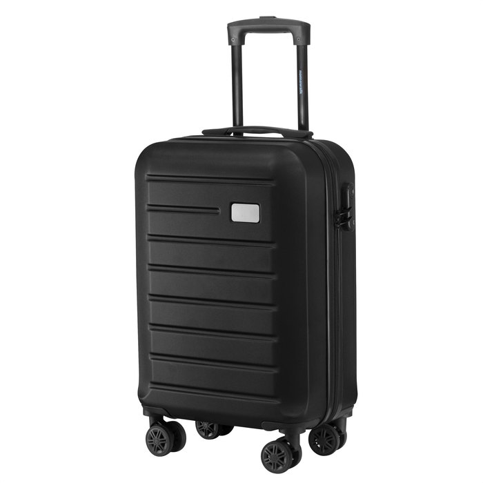 MATERIAL: 100% ABS. Interior 210D. Valija / Maleta pequeña. 8 ruedas con giro 360°. MEDIDAS: 55 x 35,5 x 20,5 cm (total) MED. EMPAQUE: 35 x 20,50 x 55,50 cm PESO EMPAQUE: 3.10 kg PIEZAS EMPAQUE: 1 pz