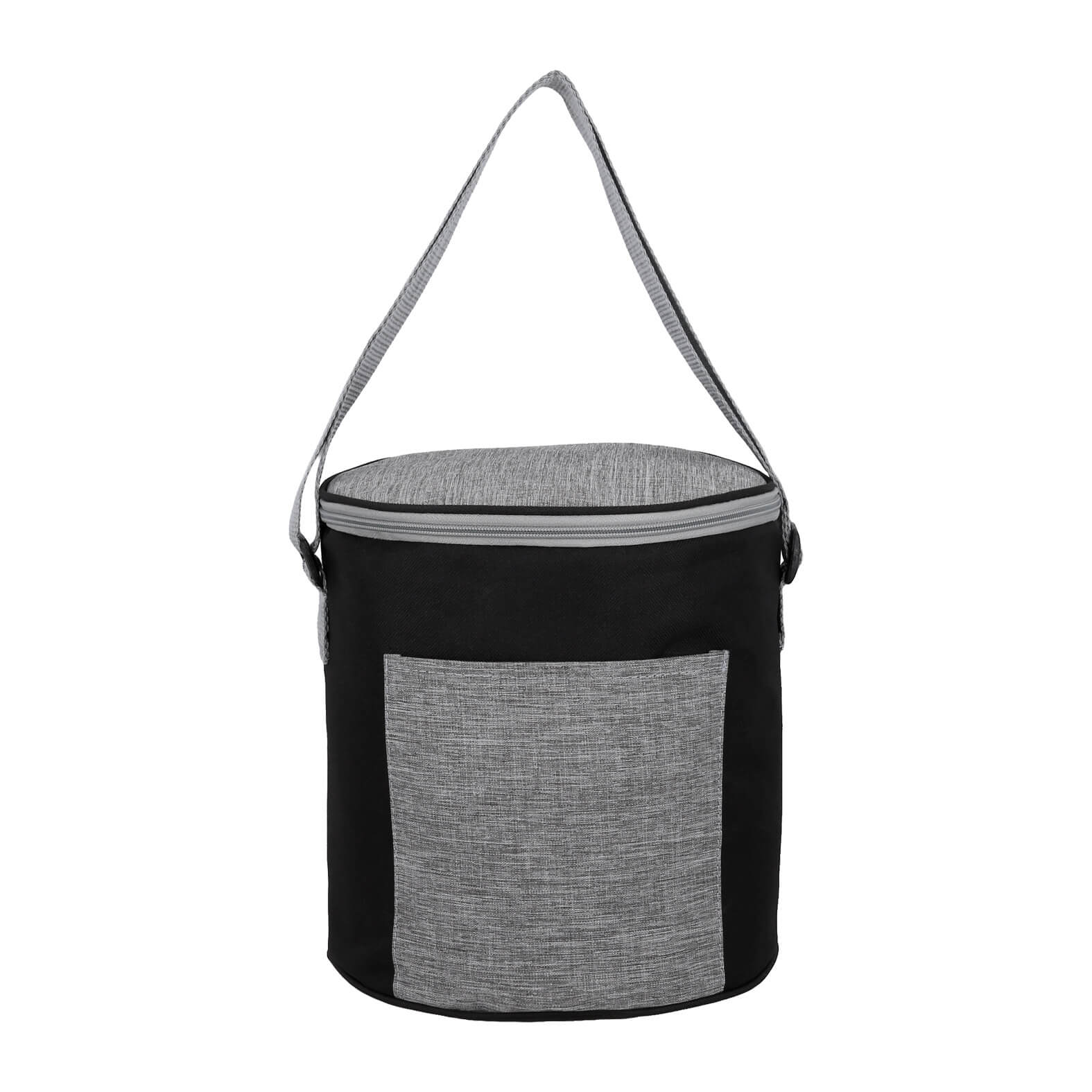 ROME Hielera circular de poliéster con interior plástificado, bolsa frontal y correa ajustable.