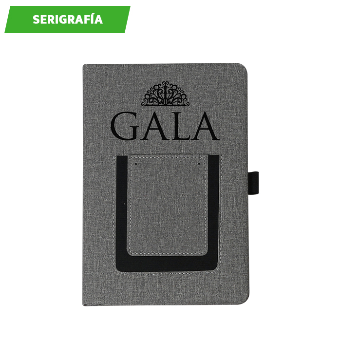 Libreta Loures. - Libreta cubierta en curpiel pasta rígida con 80 hojas y separador, bolsillo porta celular. Tamaño A5.
