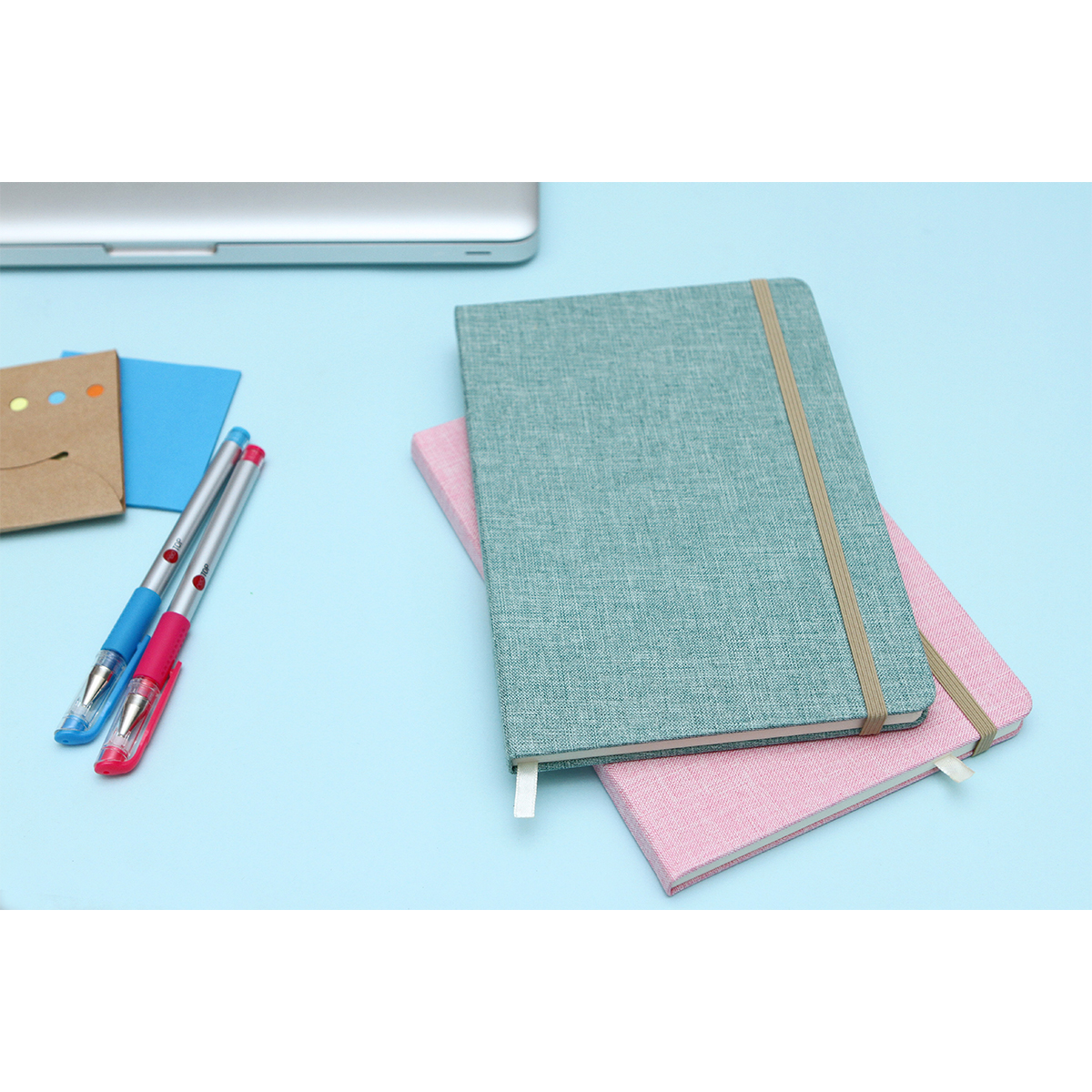 Libreta Rezzato. - Libreta con tapa de algodón reciclado con 80 hojas (rayadas) de 70 g de papel reciclado, con resorte sujetador de pastas y separador de hojas. Esta libreta es una opción eco-amigable y práctica para tomar notas, escribir ideas o llevar un diario.