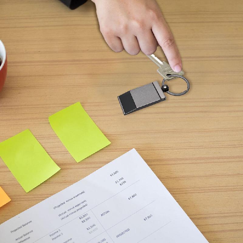 Llavero rectangular 100% pavonado. Medidas: 2.8cm x 5.3cm Material: Metal. Empaque: Bolsa de celofán.