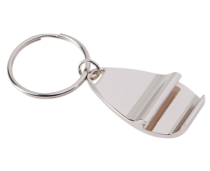 SERRA - Llavero metálico destapador, con arillo metálico reforzado. Se imprime o graba por el frente. Presentación: Caja individual de kraft.