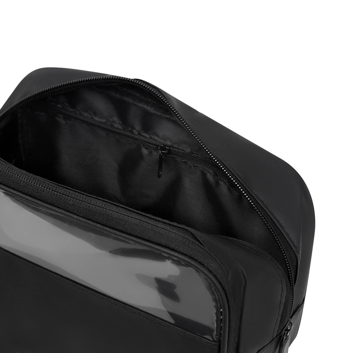 NÉCESER SMINK - Neceser de poliéster resistente al agua. Incluye una mica PVC en el compartimento frontal para una fácil visualización de su contenido. Dos compartimentos amplios y múltiples bolsillos internos para mantener todo perfectamente ordenado. Su asa lateral facilita el transporte, mientras que los pullers de rubber aseguran un cierre cómodo y seguro. Ideal para viajes, gimnasio o uso diario.