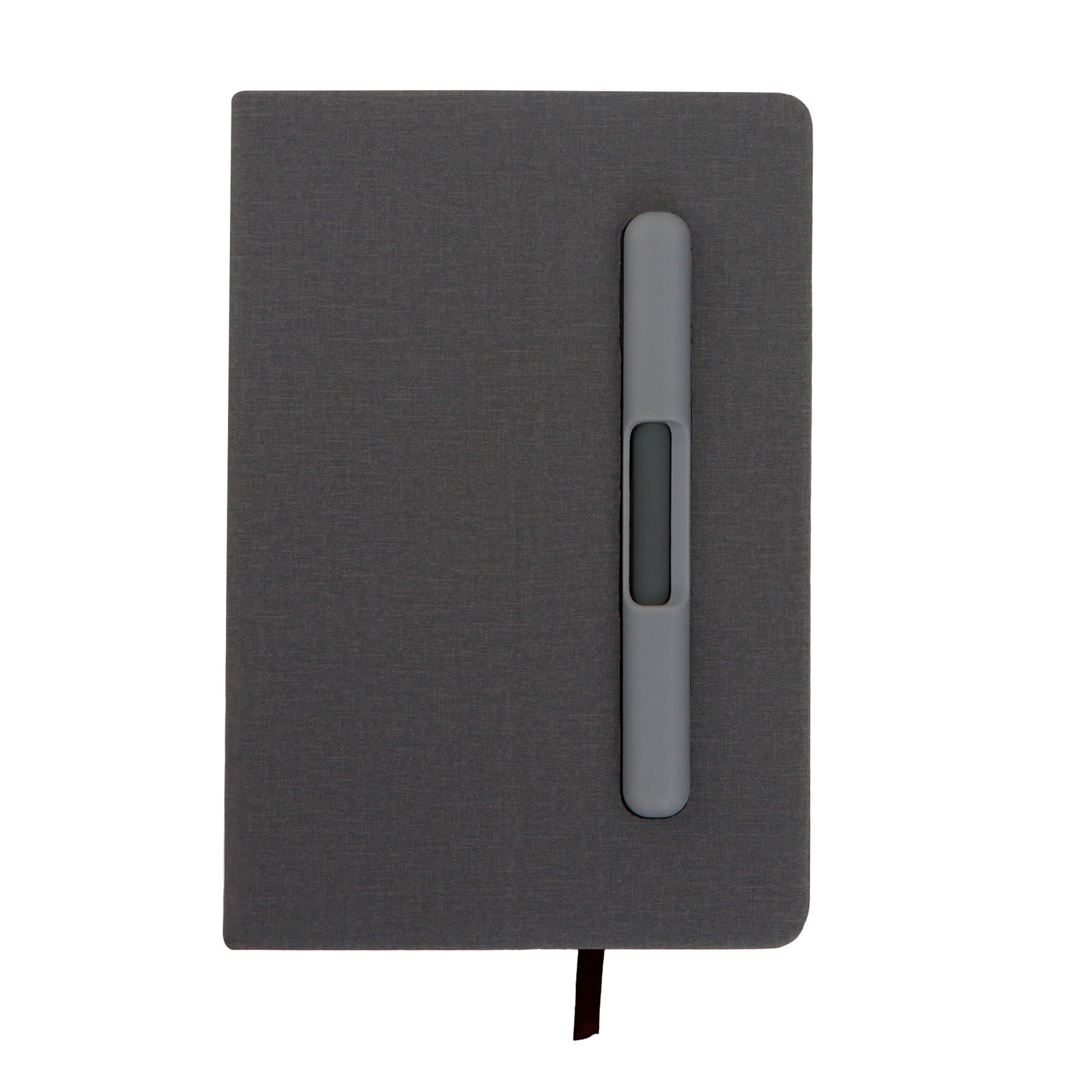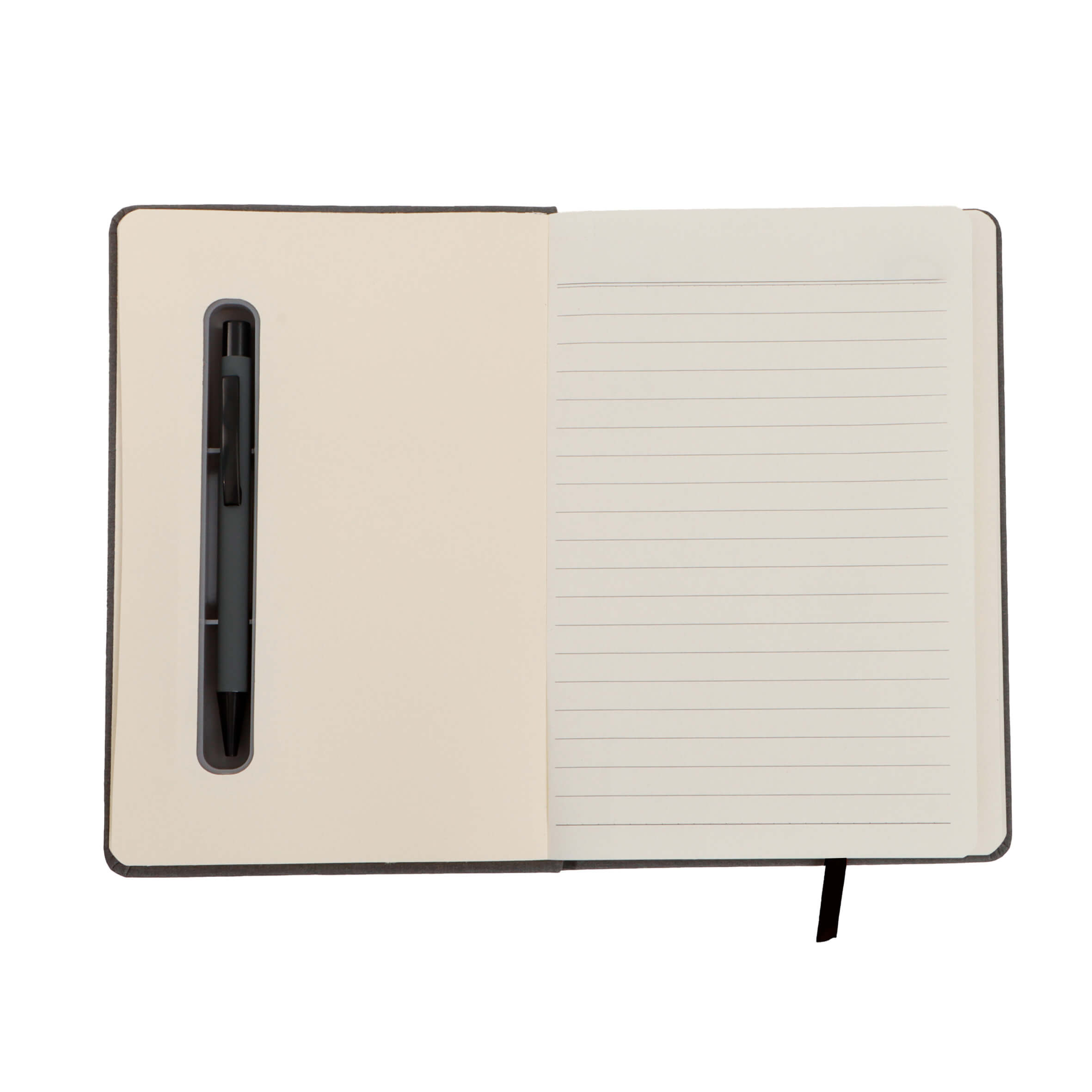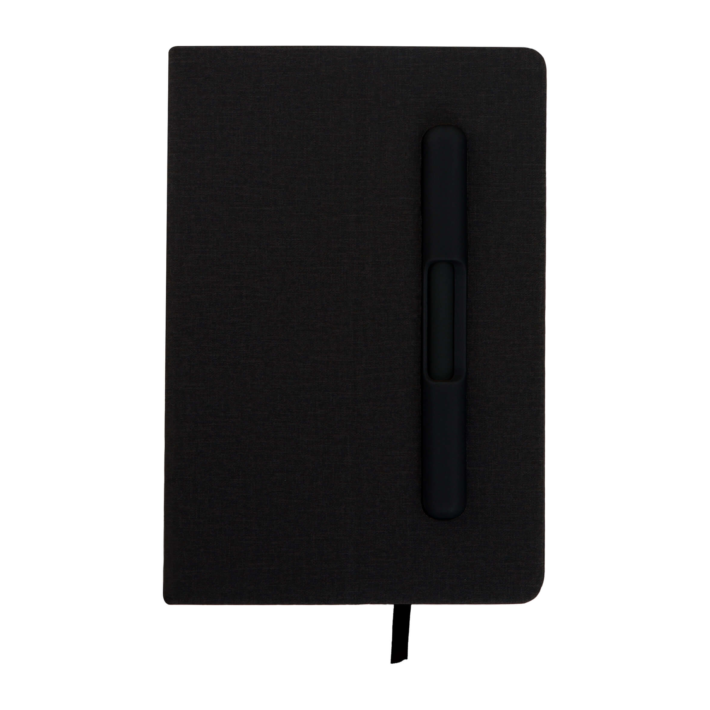 BRIVA Libreta de poliuretano con 98 hojas rayadas, separador, bolígrafo y portada ajustable que sirve como soporte para celular.