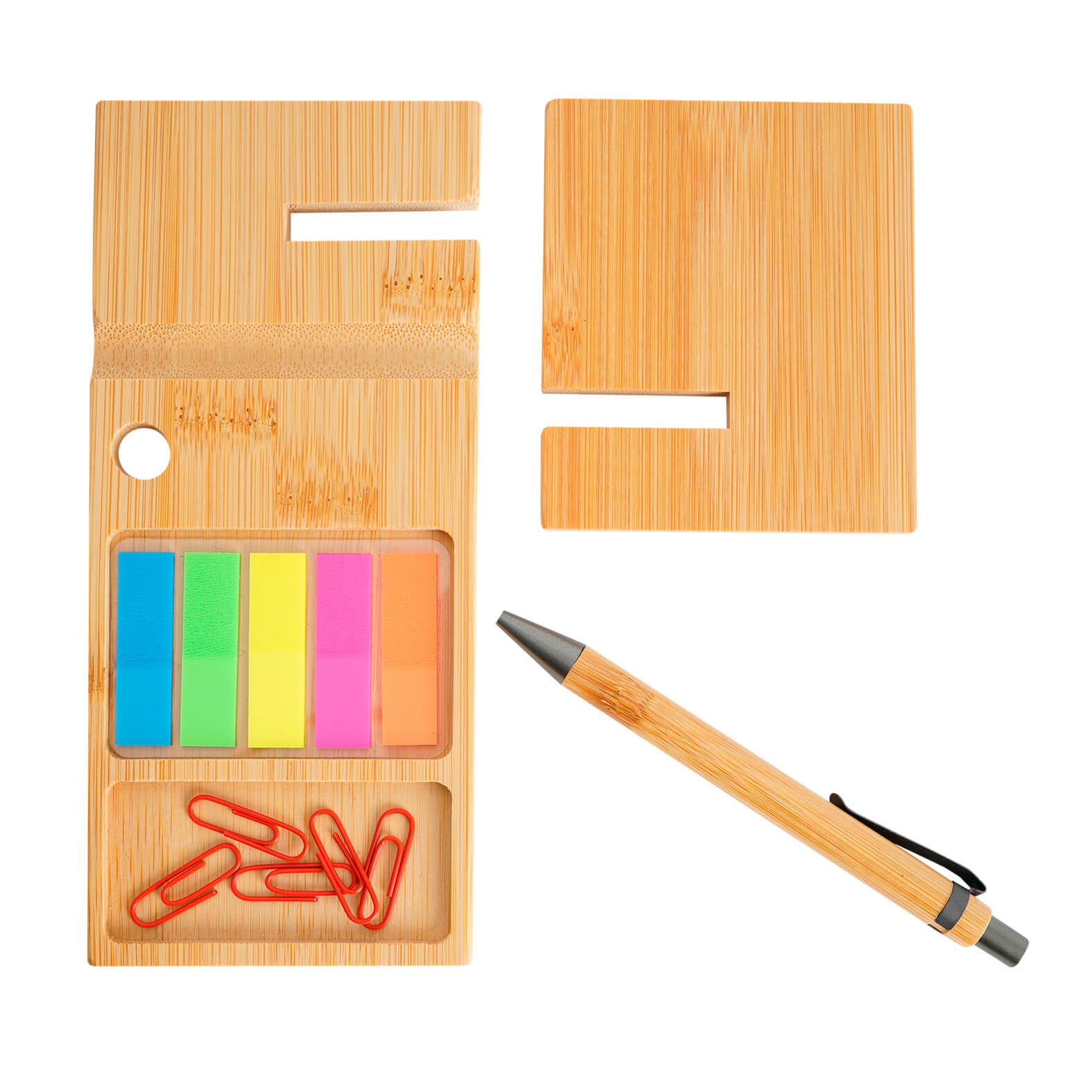 SACH Organizador de escritorio que sirve como soporte para celular, con espacio para banderas adhesivas, clips y bolígrafo.