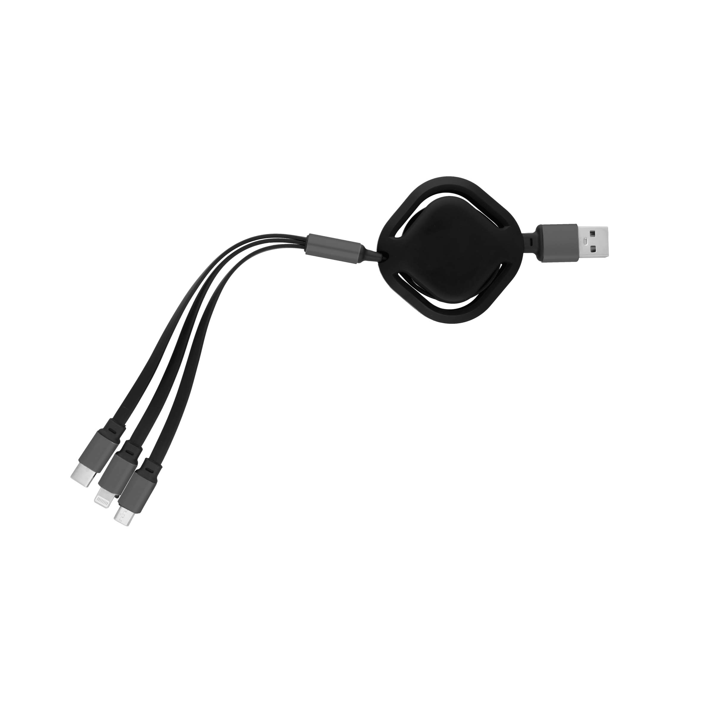 SILVER Cargador multifuncional cuadrado con entrada tipo USB, conector de salida micro USB, tipo C y lightning.