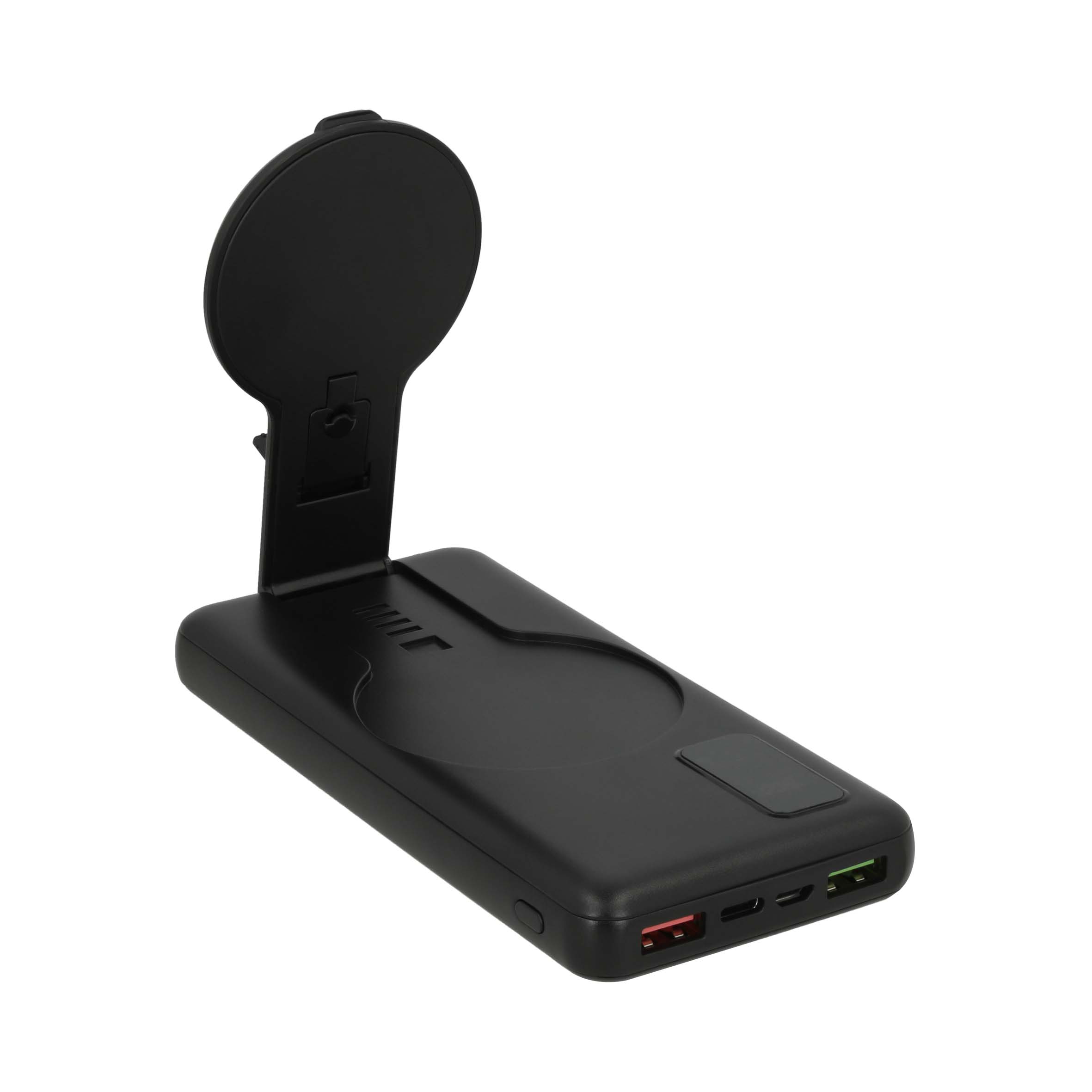 WATT Power Bank wireless de 10,000 mAh con soporte para celular plegable, 2 entradas USB, 1 v5 y 1 tipo C. (Compatible con dispositivos con tecnología Qi).