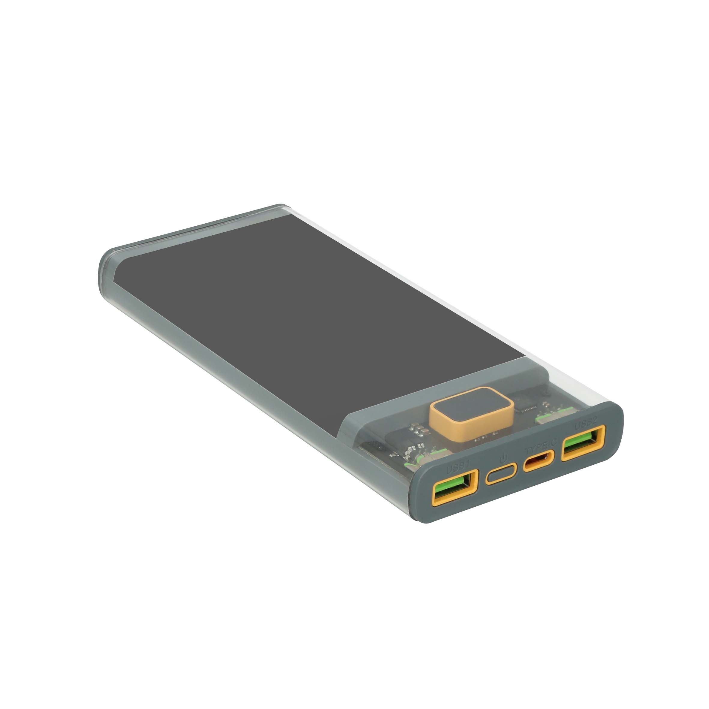 FAST Power Bank transparente de 10,000 mah con 2 entradas USB y 1 tipo C para carga rápida.