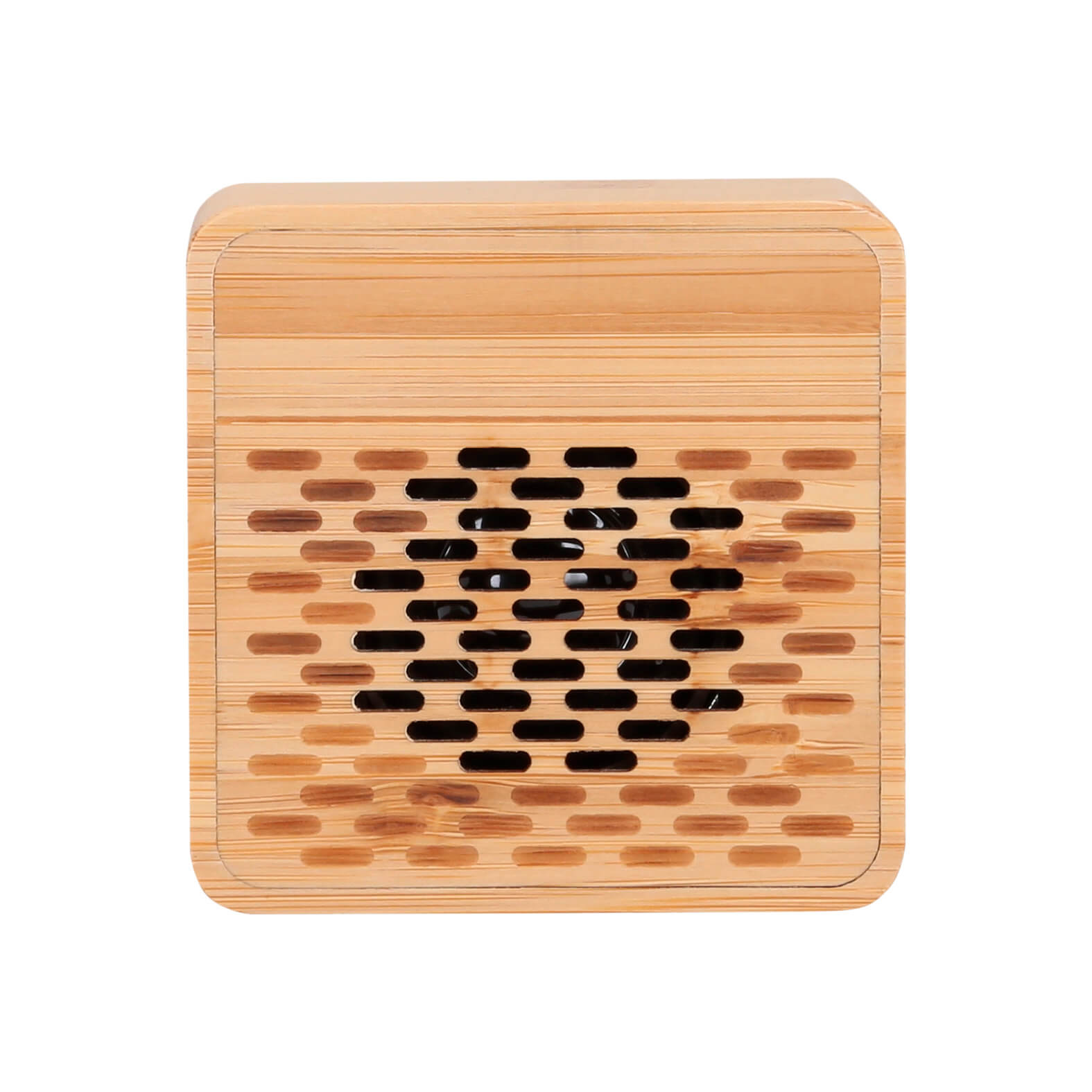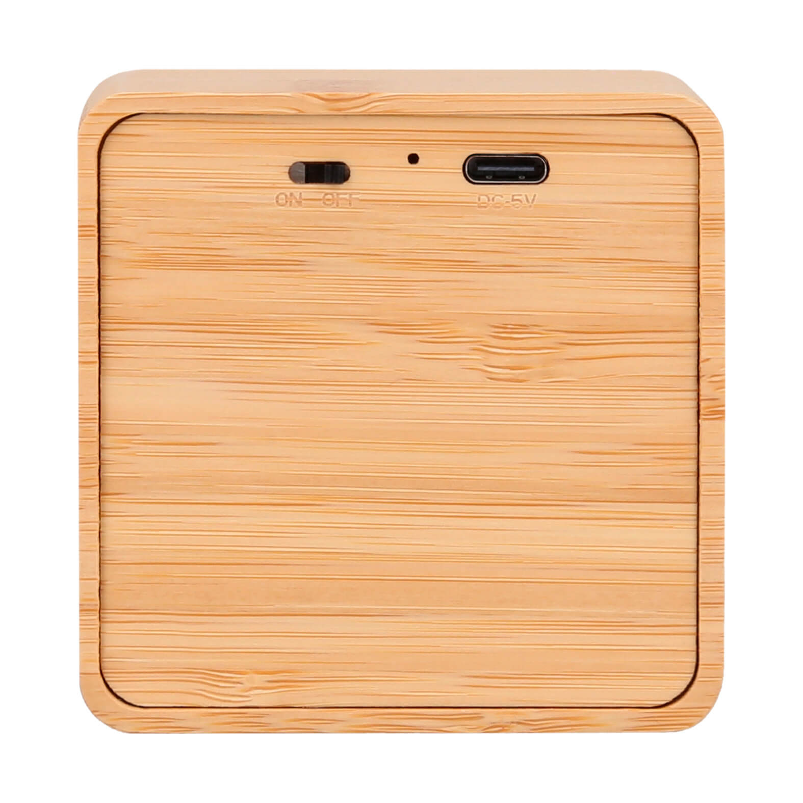 MATU Bocina bluetooth portátil de bambú con botón de encendido y apagado. Incluye cable de carga tipo C.