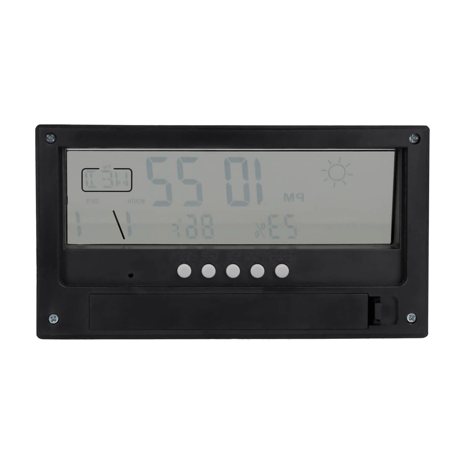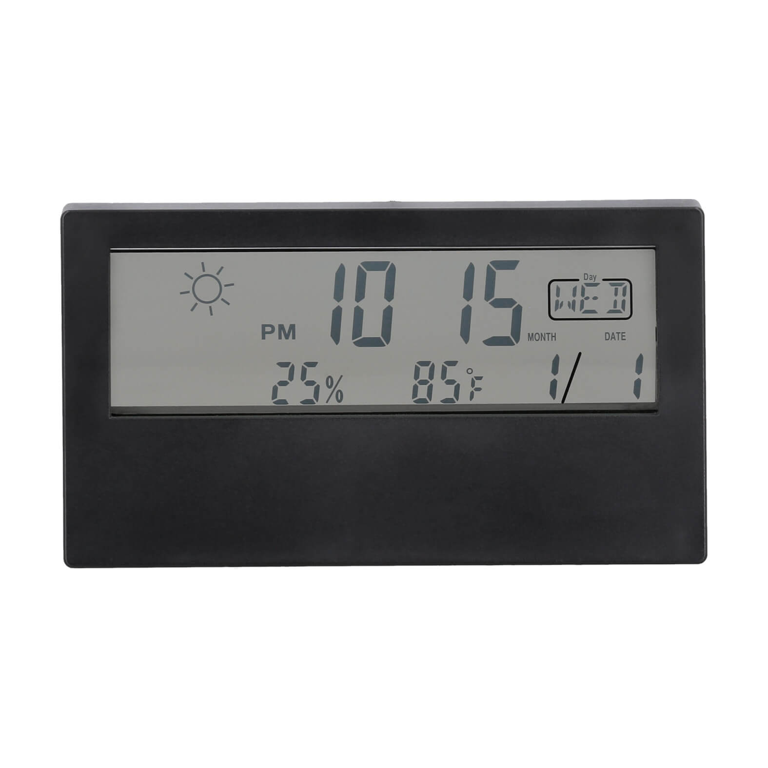 DOK Reloj digital con despertador, medidor de temperatura, día, mes y año. Incluye baterias.