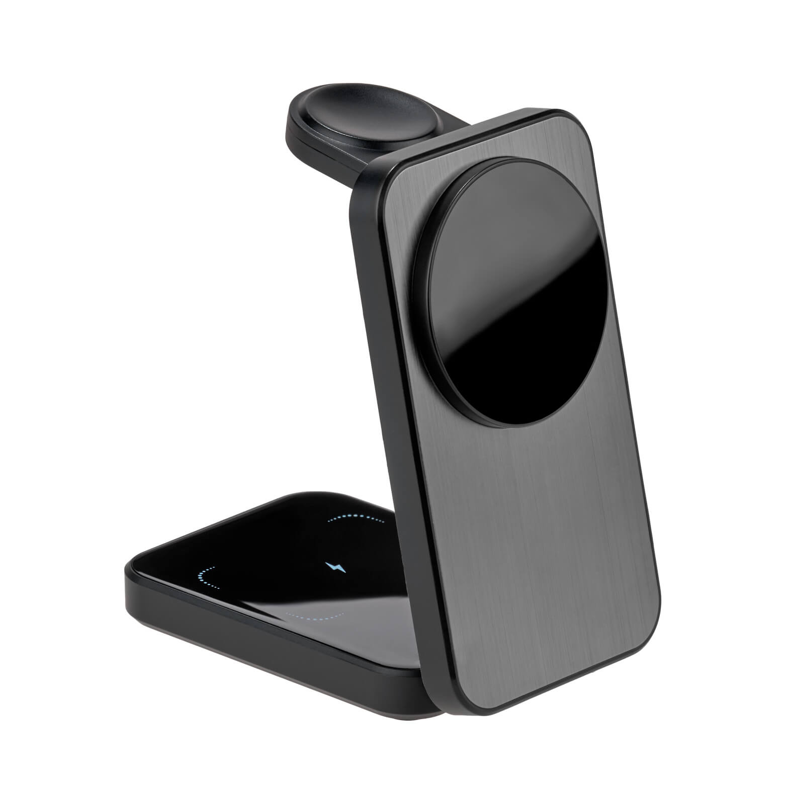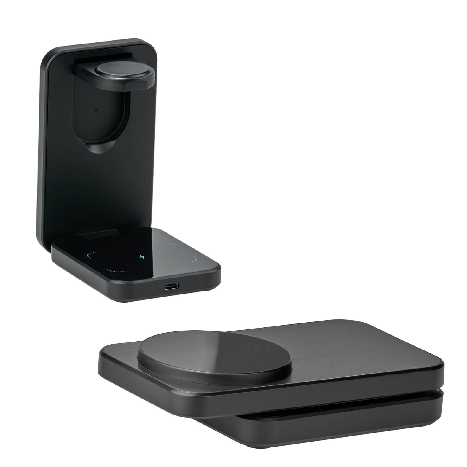 KORBEN Multicargador inalámbrico plegable 3 en 1 para smartphone, audífonos y reloj inteligente. Cuenta con cable de carga Tipo C. (Compatible con dispositivos con tecnología Qi).