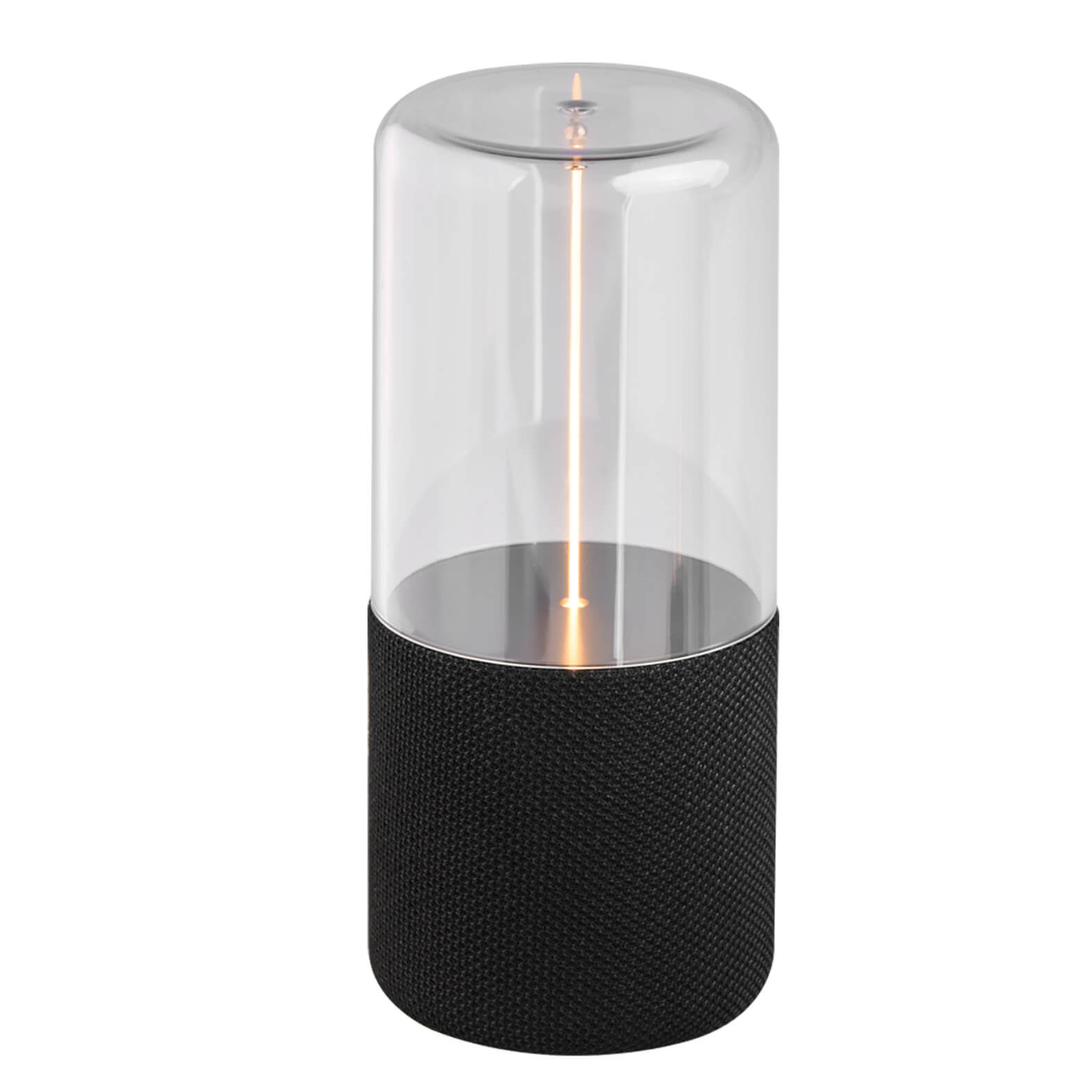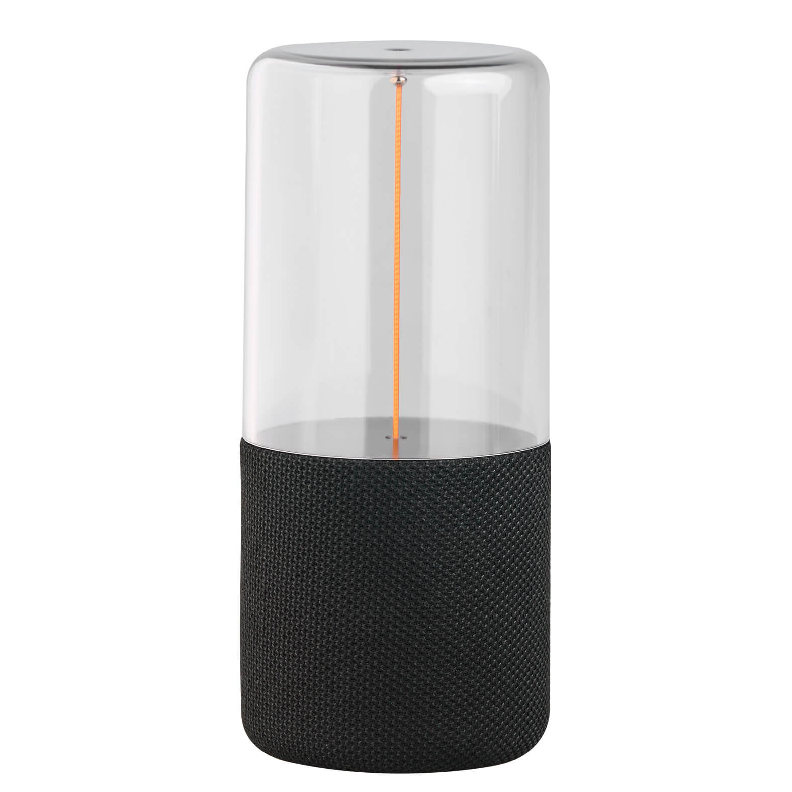 LIAM Bocina Bluetooth portátil con parte acrílica y línea de luz LED con 4 niveles de intensidad. Cuenta con controles de reproducción (play/pausa), botones de adelántar/retroceder que también funcionan para subir o bajar el volumen, radio FM y puerto TF. Incluye cable de carga tipo C.