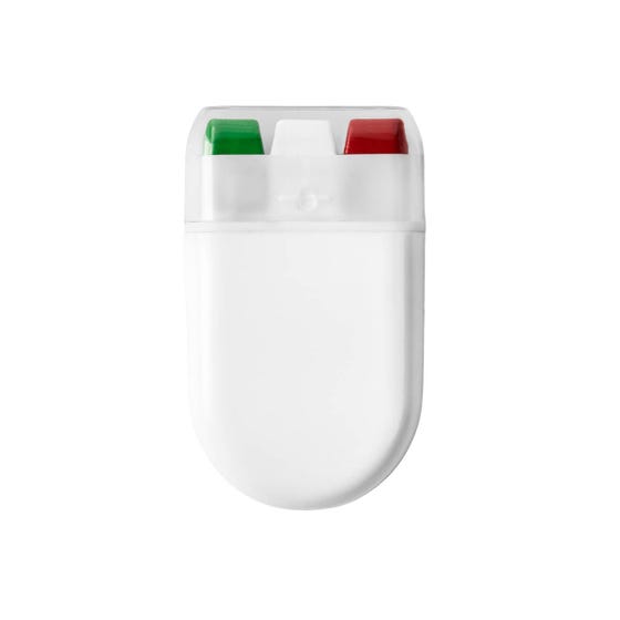 MATERIAL: Plástico MEDIDAS: 3.5 x 6 x 1.5 cm IMPRESION: Serigrafía / Tampografía MED. EMPAQUE: 49 x 26.5 x 27 cm PESO EMPAQUE: 30 Kg PIEZAS EMPAQUE: 500