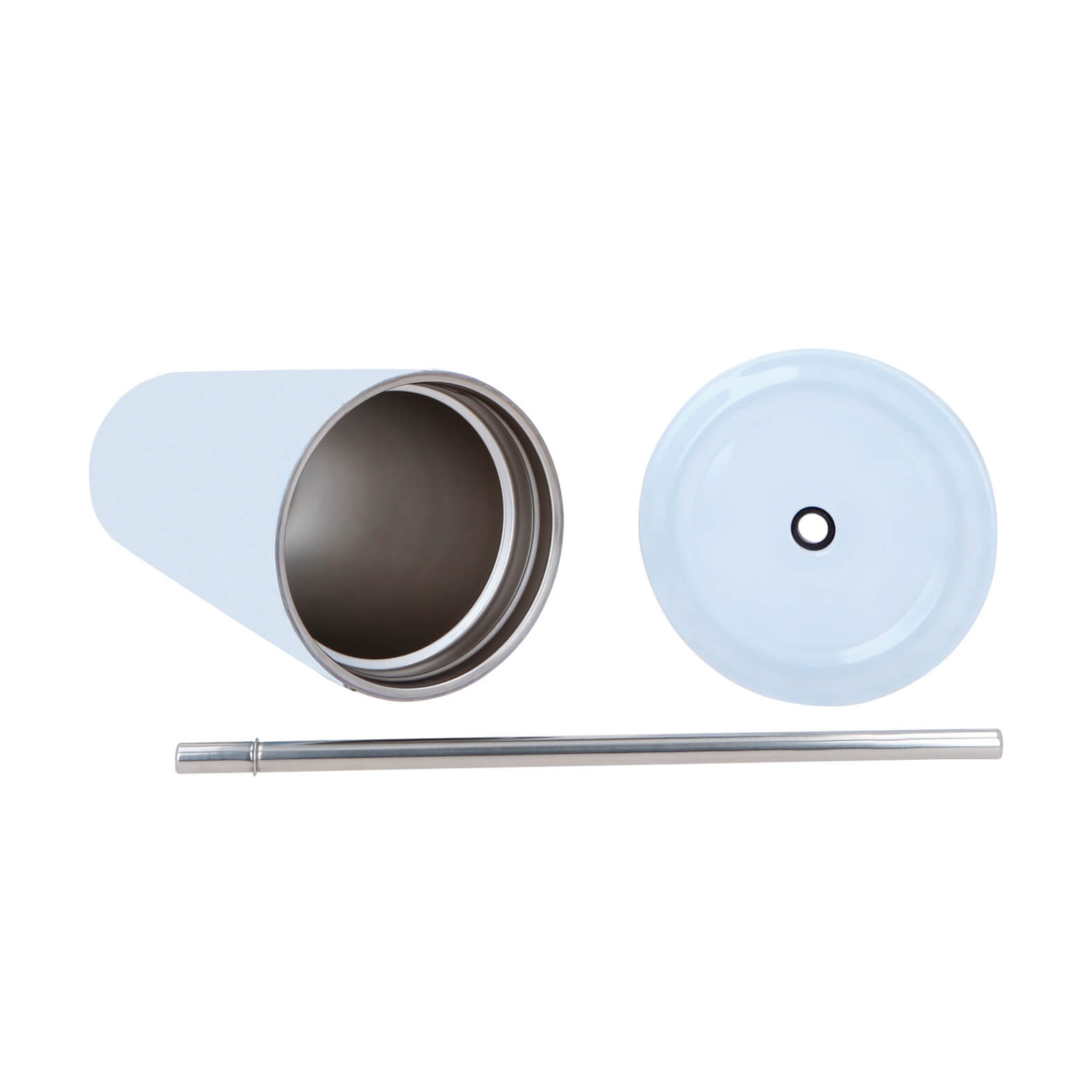 KAZ Termo sublimable con doble pared de acero inoxidable, insulado al vacío, popote metalico y tapa enroscable.