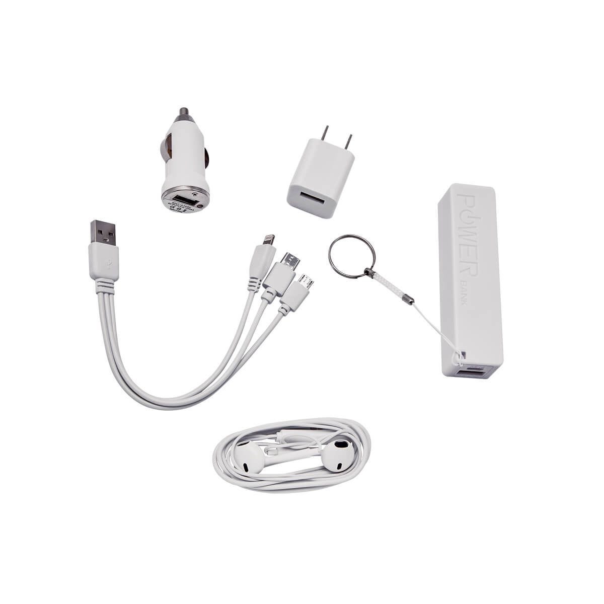 SET CARRY - Incluye batería auxiliar de 2,600 mAh, cargador para automóvil, cargador de pared, audífonos, cable cargador USB 3-en-1 (micro USB, tipo C y lightning) y estuche.