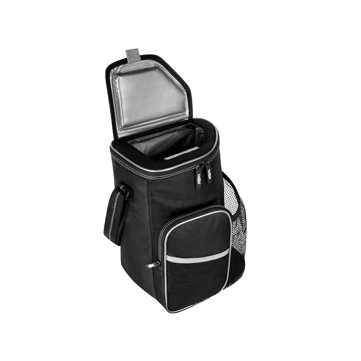 HIELERA ORGORO - Interior plastificado impermeable. Bolsa frontal con cierre y bolsillo lateral y frontal de malla. Bolsa principal con cierre y ventana superior para fácil acceso al interior. Incluye correa ajustable. Capacidad para 6 latas.