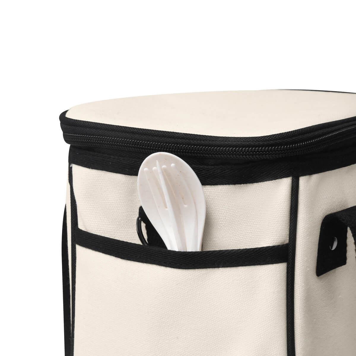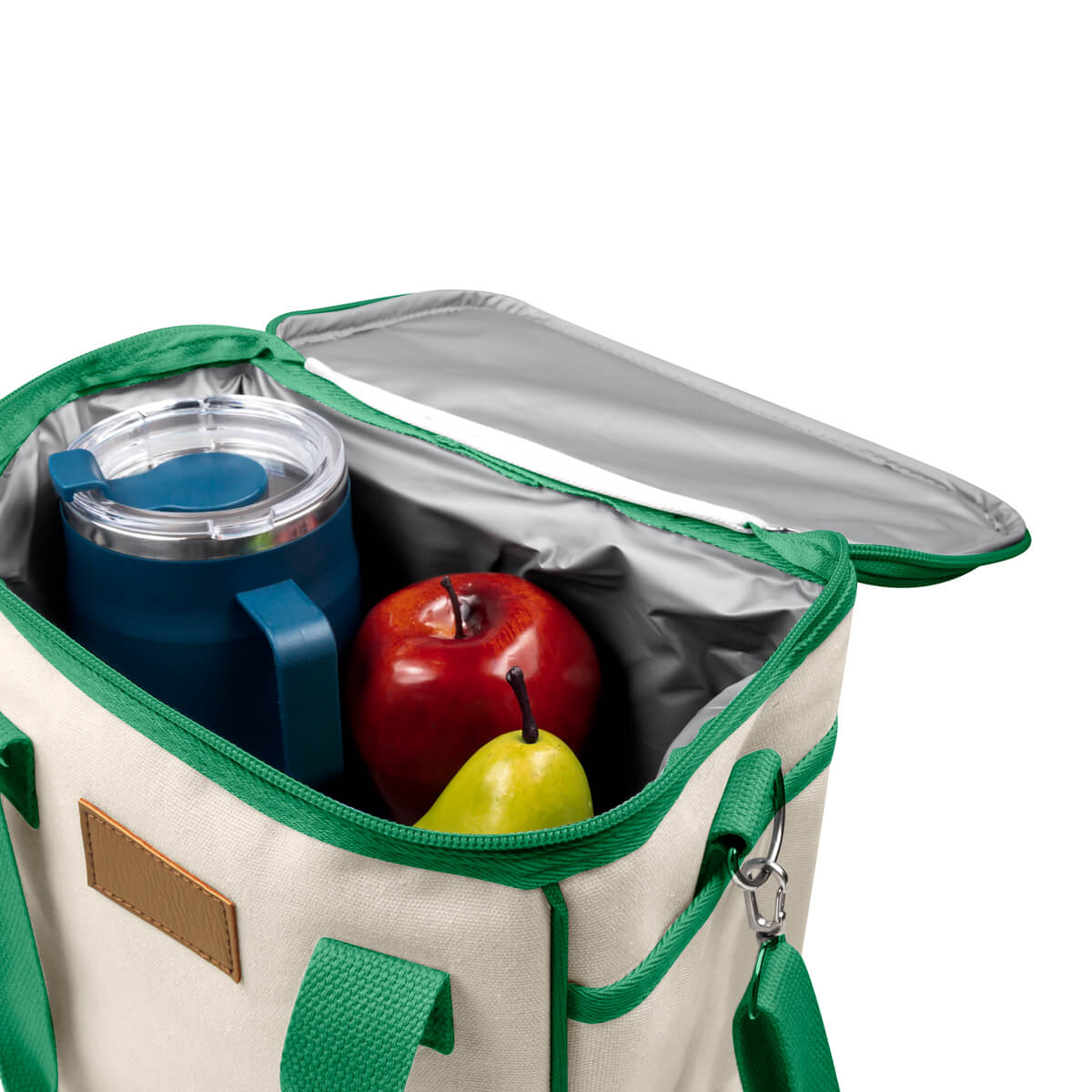 HIELERA ULUN - Hielera con interior sellado impermeable. Su exterior está fabricado en material algodón, un material amigable con el medio ambiente, que la hace una opción ecológica. Los detalles de color en asas y cierre le dan un toque moderno y vibrante, convirtiéndola en una opción única para llevar a picnics, la oficina o cualquier salida al aire libre. Capacidad para 9 latas.