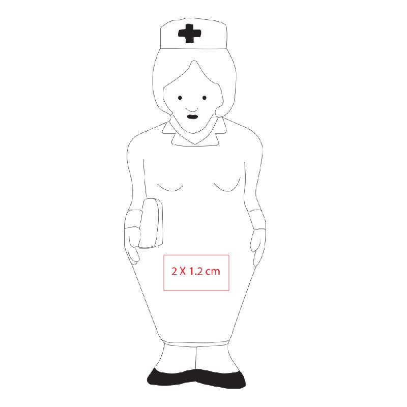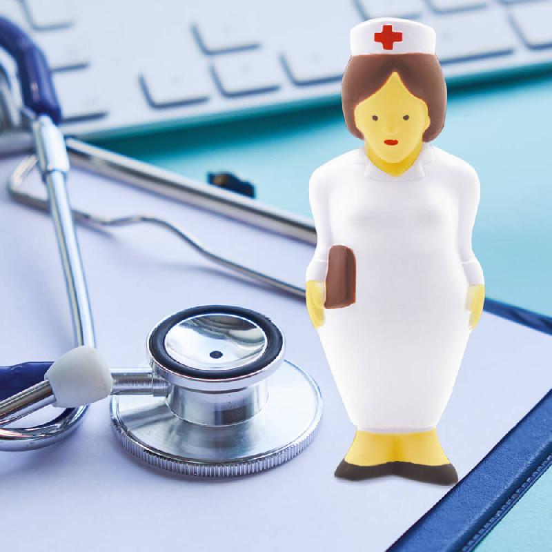 Figura antiestrés en forma de enfermera. Medidas: 3.8 x 10 x 3.2 cm Material: PU. Empaque: Bolsa individual