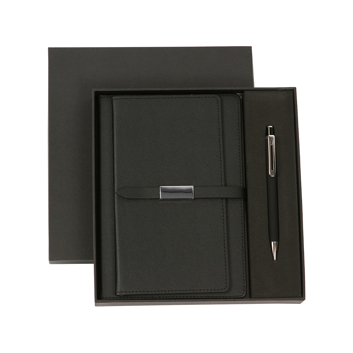 MEDIDAS: Caja: 21,2x22,4x3 cm. | Libreta: 15,2x 21,2 cm. | Bolígrafo: 13,9x1,35 cm. MED. EMPAQUE: 46x41x25 PIEZAS EMPAQUE: 24