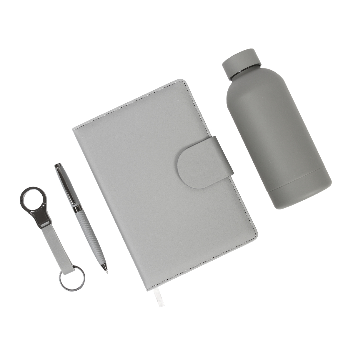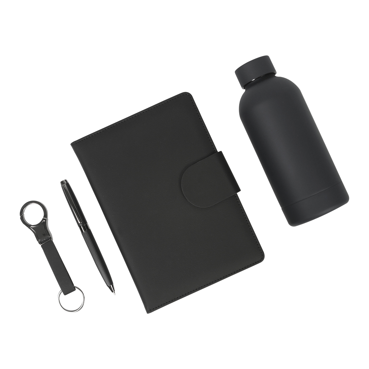 Set Badcall. - Set ejecutivo 4 en 1. Incluye libreta de 100 hojas de 80?g, bolígrafo tipo ball pen fabricado en acero inoxidable con tinta de escritura en color negro, llavero fabricado en PU y acero y termo de 350?ml fabricado en acero. Elegancia y funcionalidad en un solo paquete. Ideal para regalar o usar a diario.