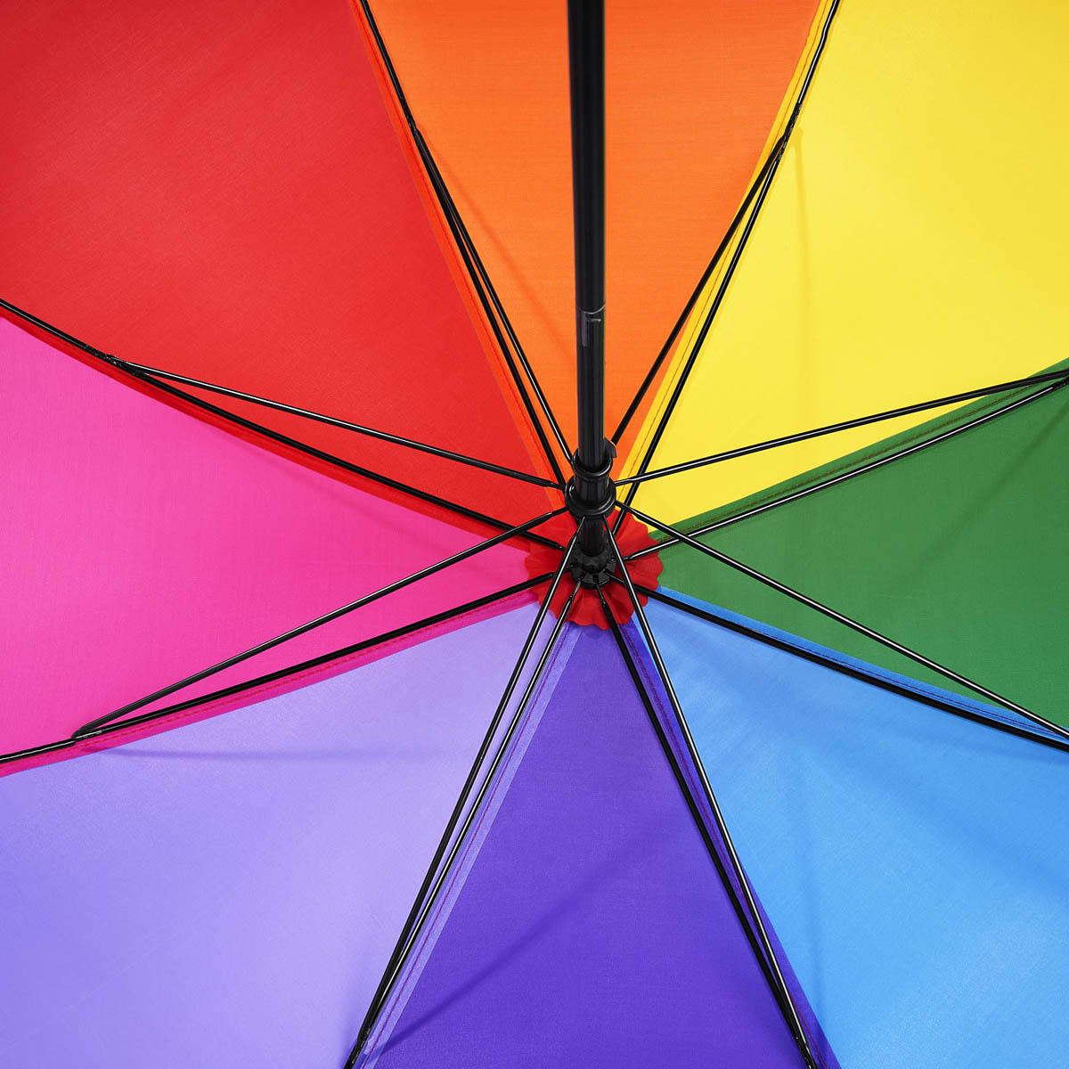 PARAGUAS PRIDE - Paraguas de 8 paneles, cada panel de un color. Sistema manual. Mango de esponja. Su diseño arcoíris, colorido y alegre refleja la diversidad y la inclusividad.