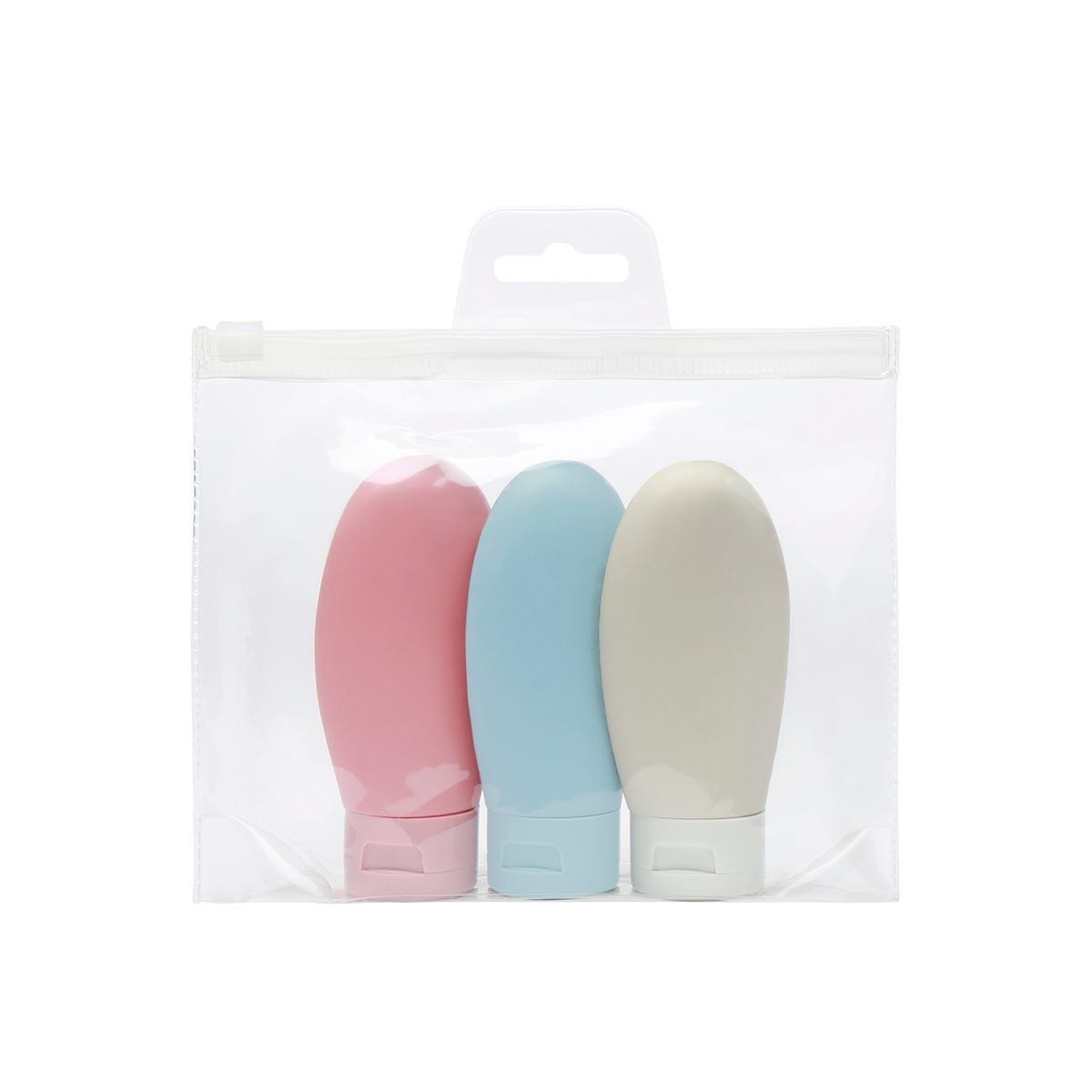 SET BOTELLAS DE VIAJE SIENA - Set de viaje ideal para almacenar todos tus productos de cuidado básico antes de un viaje. Incluye bolsa con cierre zip y 3 recipientes de 60 ml.