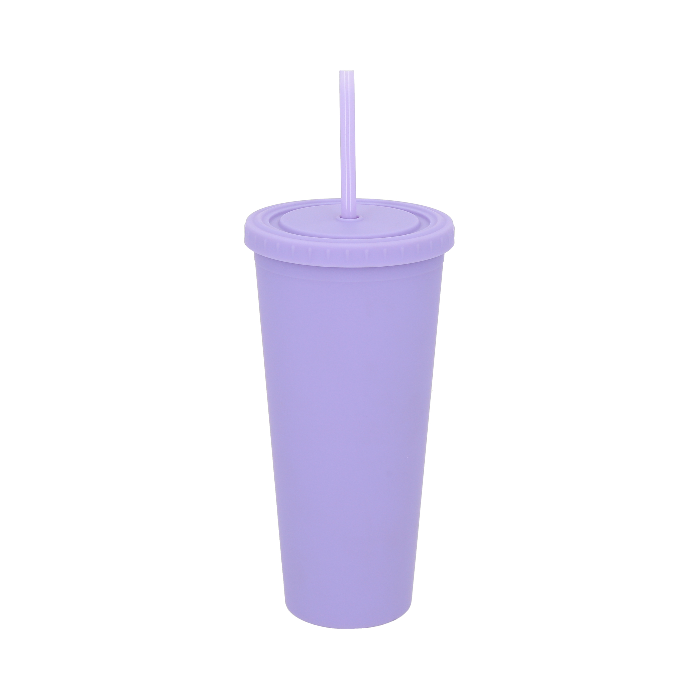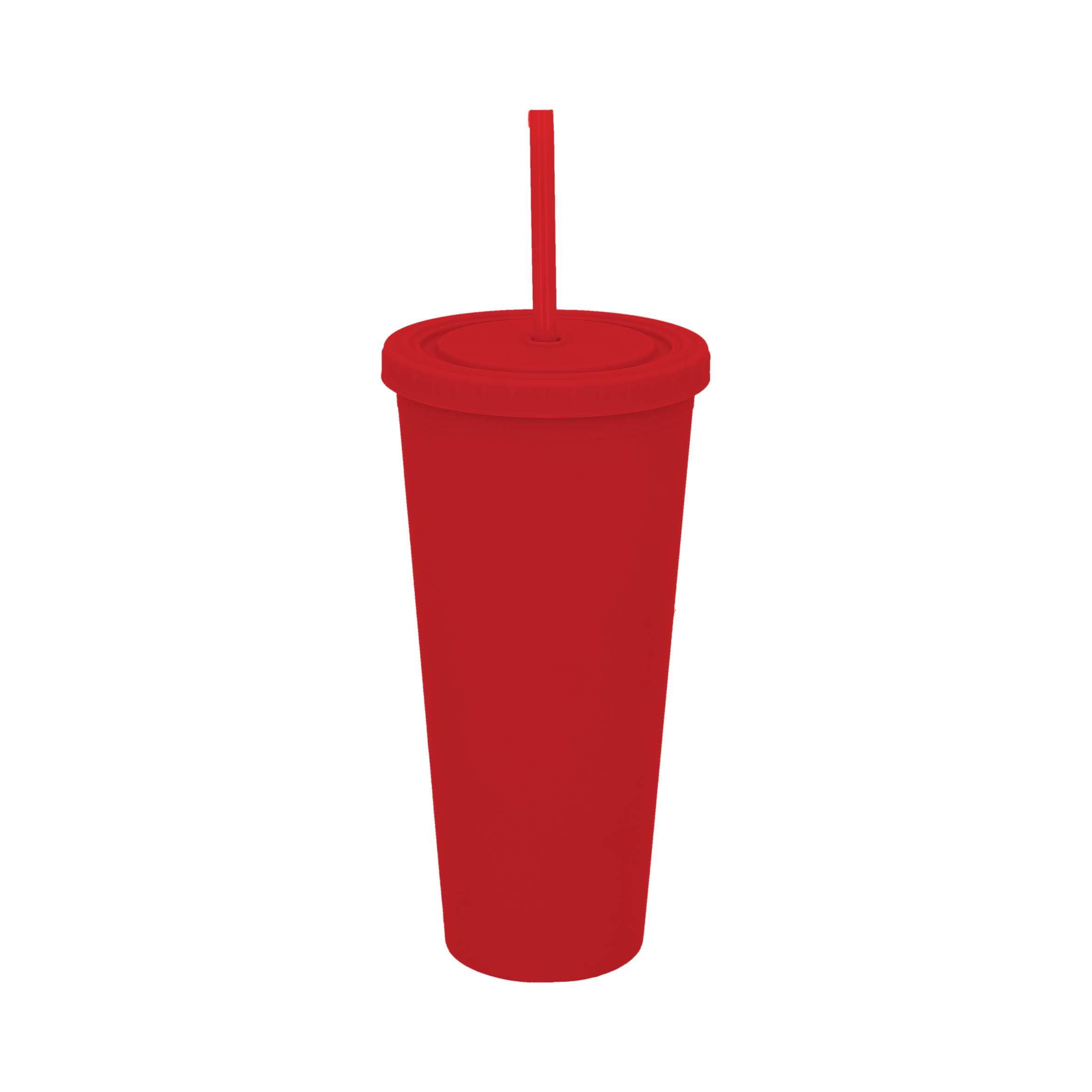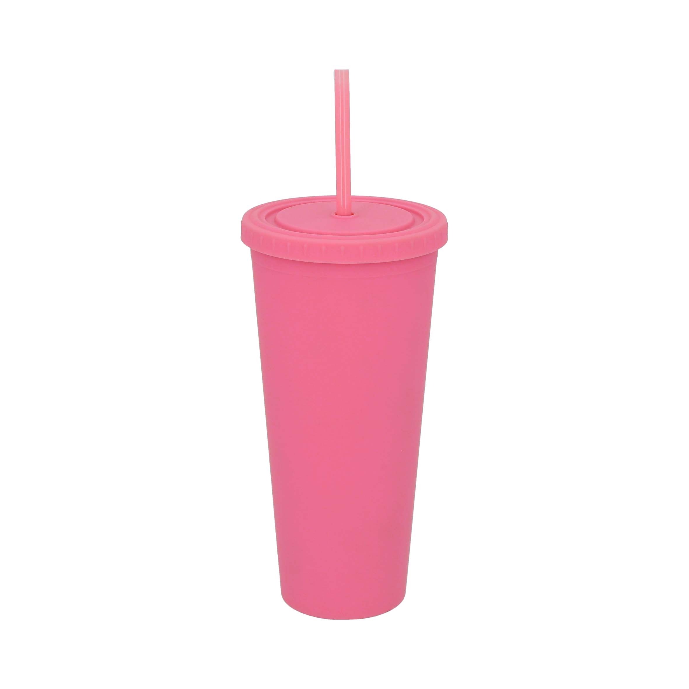 SOLEI Vaso de plástico con doble pared, tapa enroscable y acabado rubber, incluye popote de plástico.