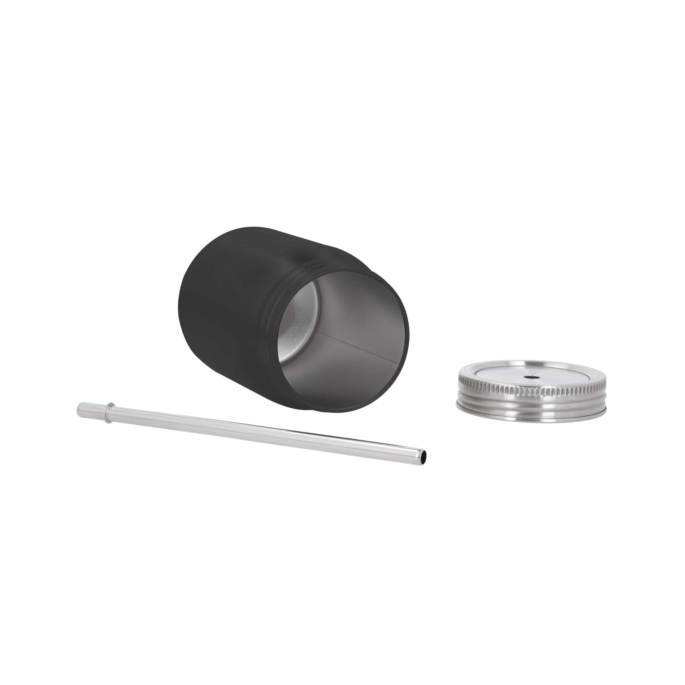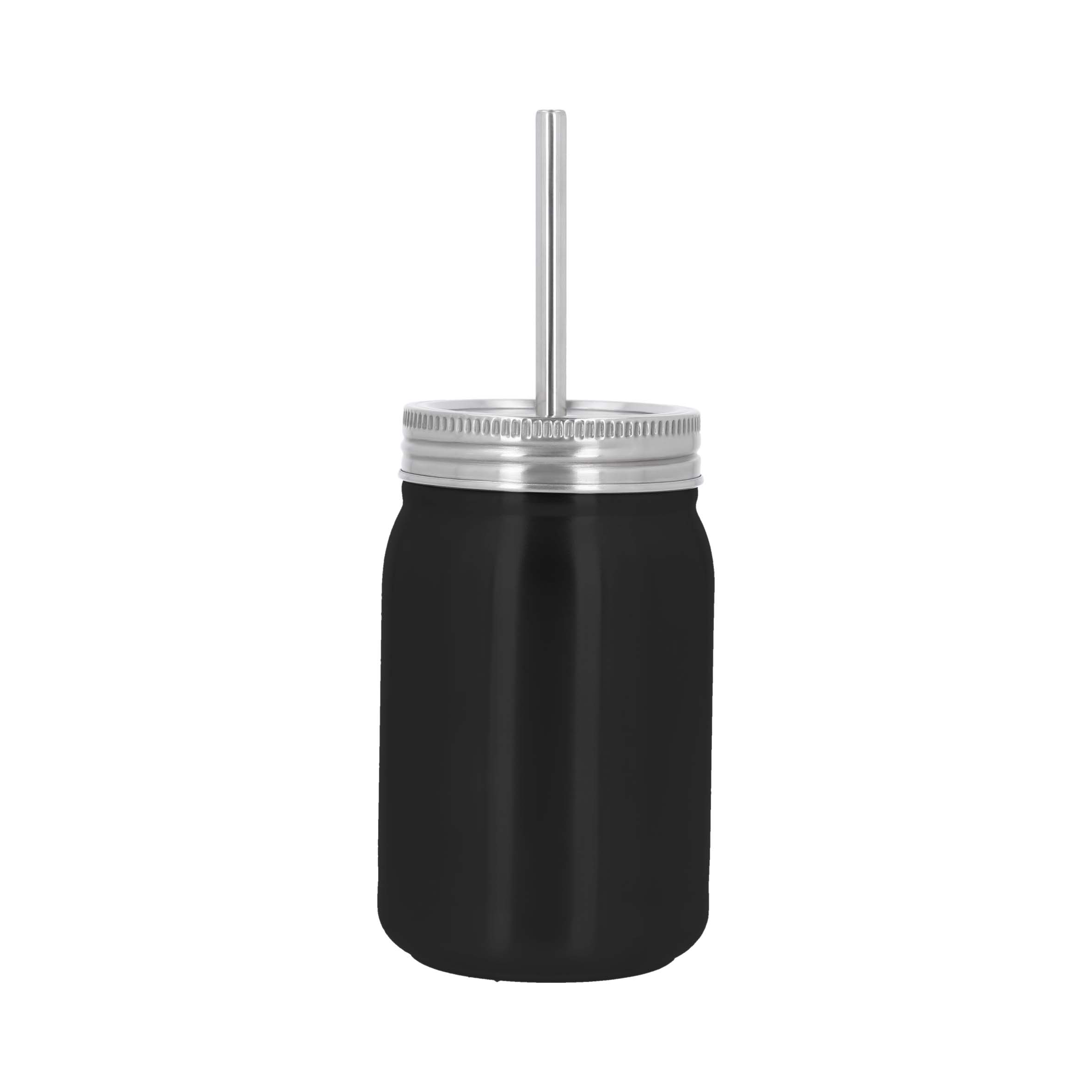CASTILLO Tarro con doble pared de acero inoxidable, insulado al vacío con tapa de rosca y popote metálico.