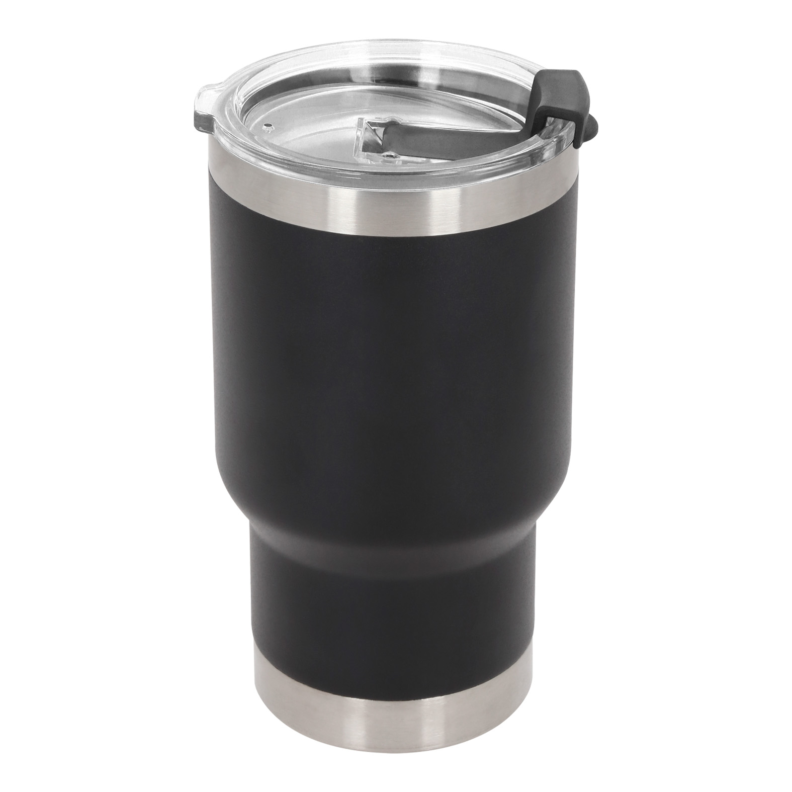 BASIN Termo con doble pared de acero inoxidable, insulado al vacío, acabado rugoso y tapa de cierre a presión.
