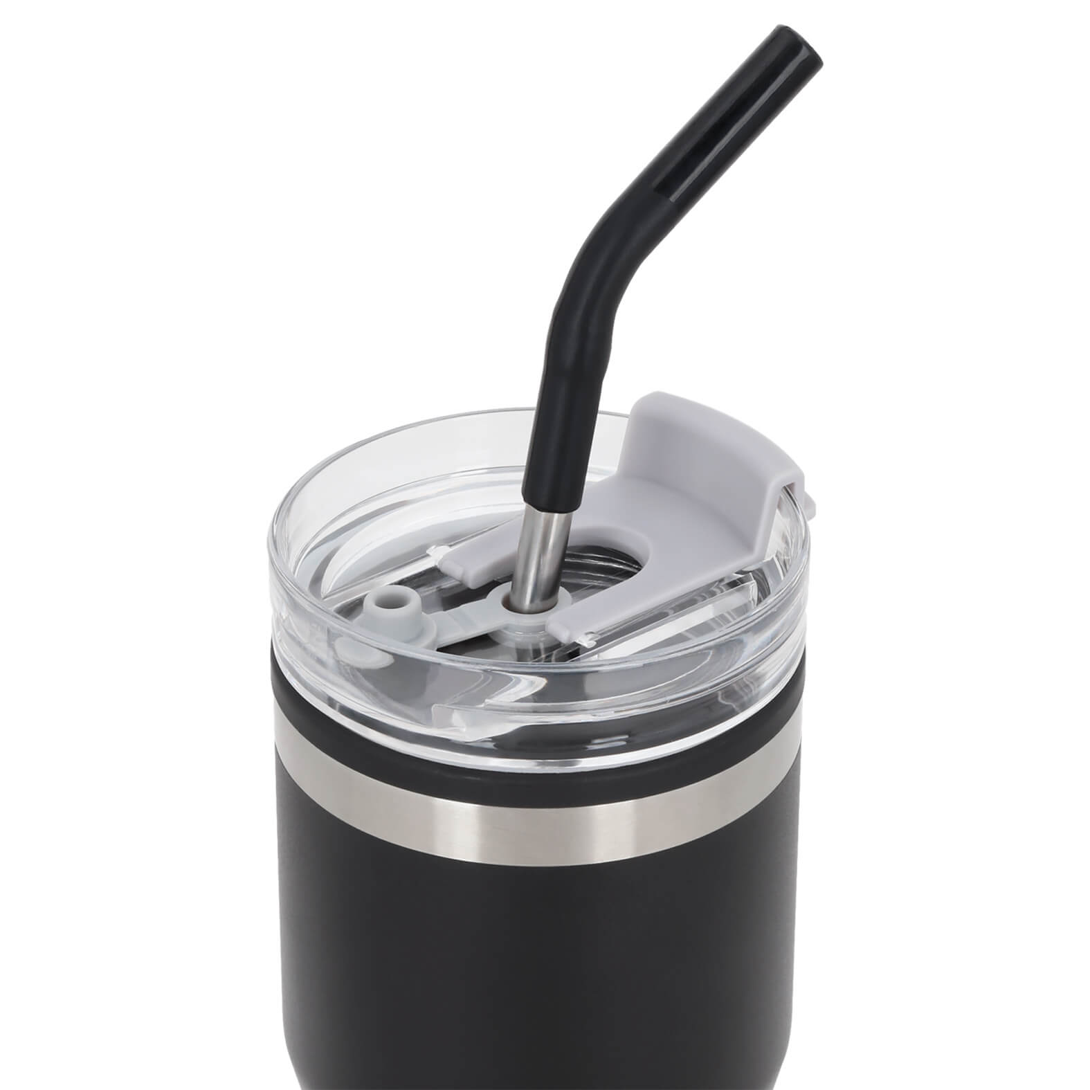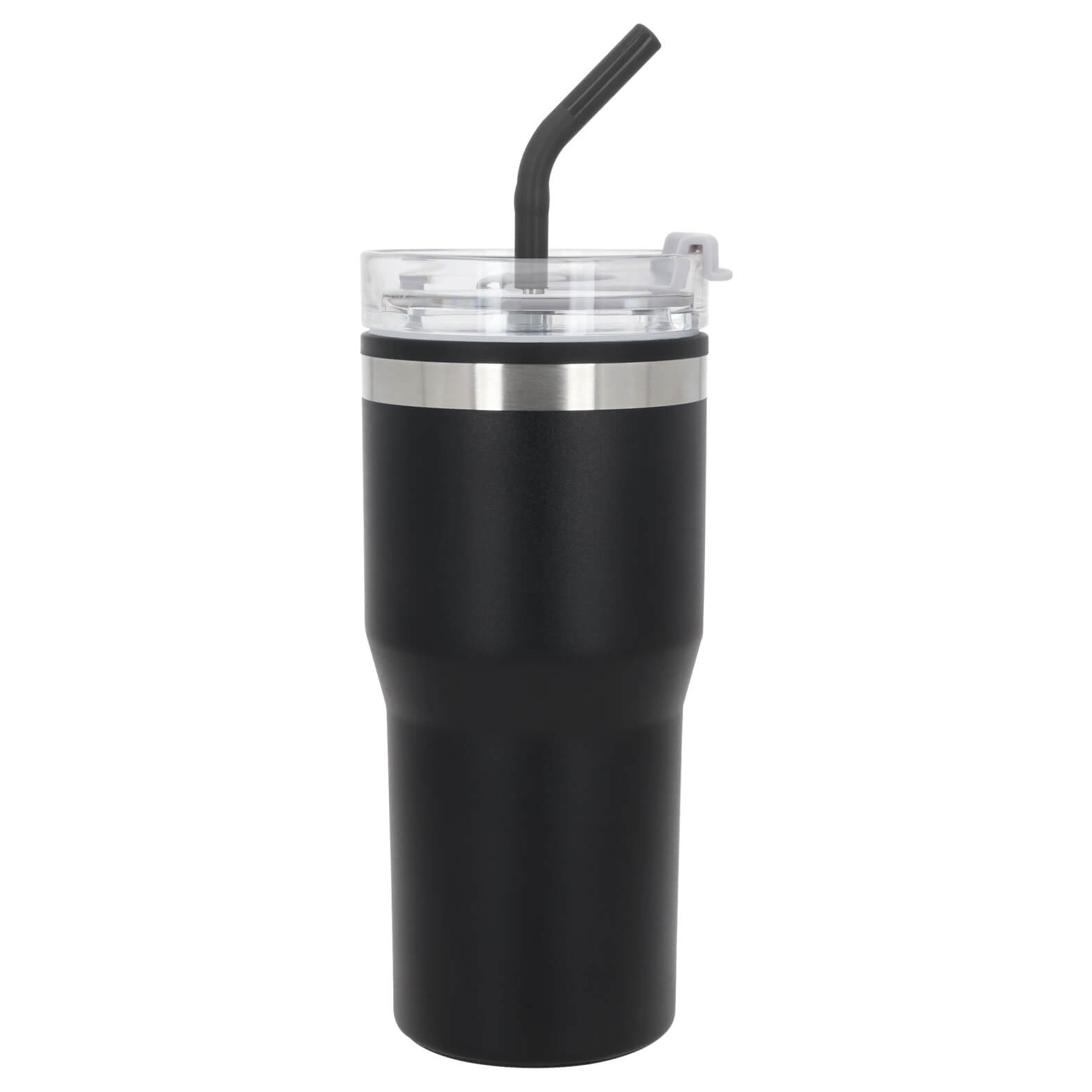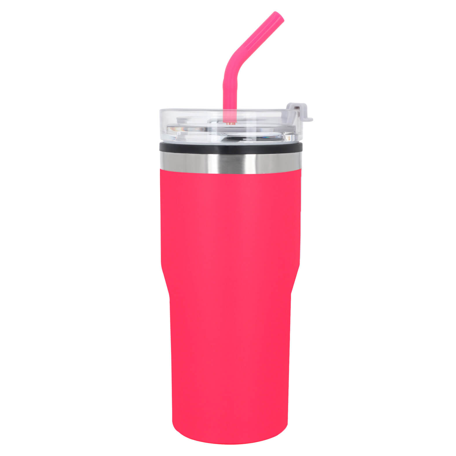 WESTERN Termo de doble pared con exterior de acero inoxidable e interior de plástico y acabado rugoso. Incluye tapa de rosca con boquilla de cierre a presión y popote de metal.