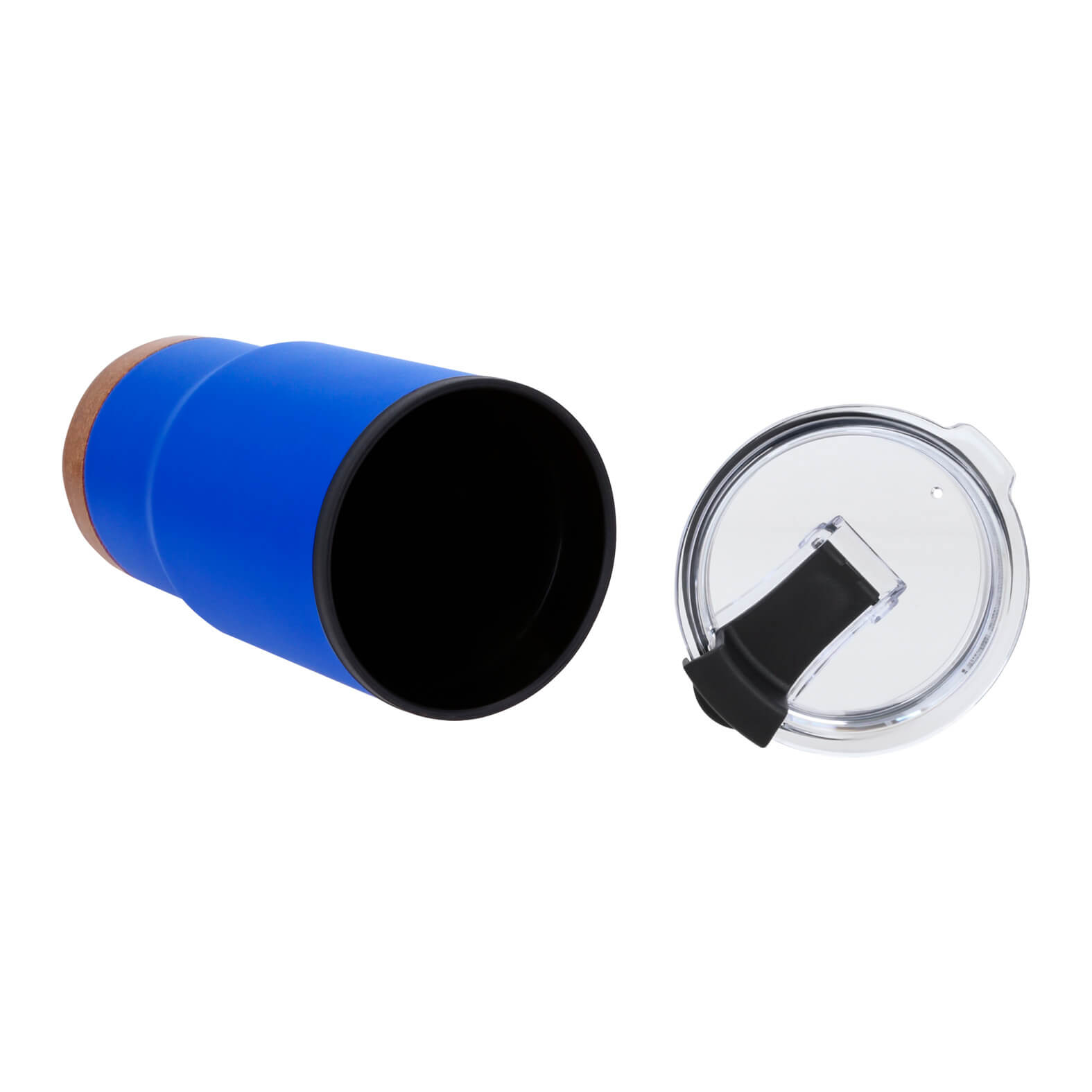 VOLTAIN Termo de doble pared con acabado rugoso, exterior de acero inoxidable e interior de plástico, base de corcho y tapa de cierre a presión.