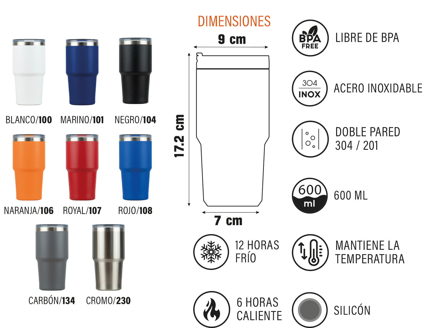 TERMO DAKOTA DE 2 PAREDES DE PLASTICO CON TAPA TRANSPARENTE CAP 600 ML PLATA...