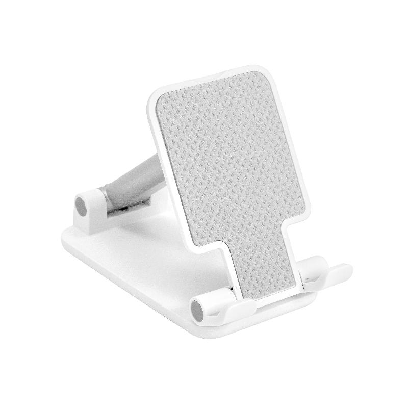 SOPORTE DE ESCRITORIO PARA CELULAR "ATRIL" Soporte plegable para móvil. Tiene un sistema extensible de ajuste de altura e inclinación para posicionar el celular. Base con apliques de silicona antideslizantes. Presentación en caja de regalo kraft.