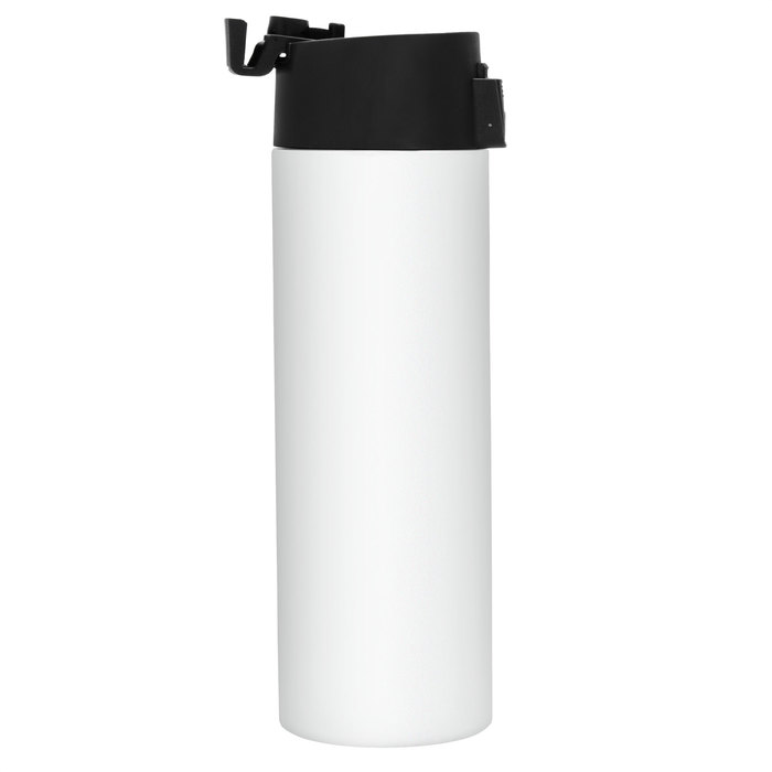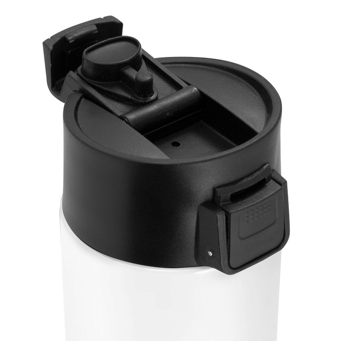 BOTELLA TÉRMICA "ALLY" SUBLIMABLE Botella doble pared, sellada al vacío. Interior de acero 304 y exterior de acero 201. Pintura color blanco brillante apta para sublimado. Tapa en PP con traba de seguridad y botón pulsador de apertura. Mantiene por más de 12 hs la temperatura de las bebidas calientes y 24 hs de las bebidas frías. Presentación en caja de regalo kraft. TU LOGO SUBLIMADO [sevebien]
