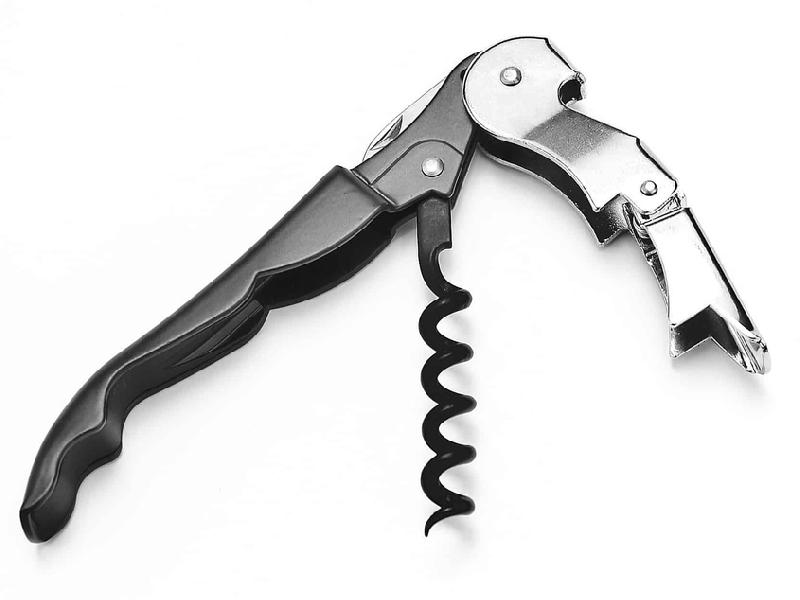 DESTAPADOR SACACORCHOS "UCO" Destapador sacacorchos dos tiempos de vinos color negro, pintura mate y detalles en color plata. Sierra afilada para sacar la cubierta o capsula de la botella. Presentación en caja de regalo.