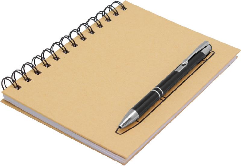 SET DE LIBRETA Y BOLÍGRAFO "MAGIC" Libreta color Kraft, anillado metálico y 70 hojas punteadas de 70g. Bolígrafo metálico (BP295) color negro con tinta negra. Mediante sistema de imanes el bolígrafo queda sujetado a la tapa, causando un efecto sorprendente.