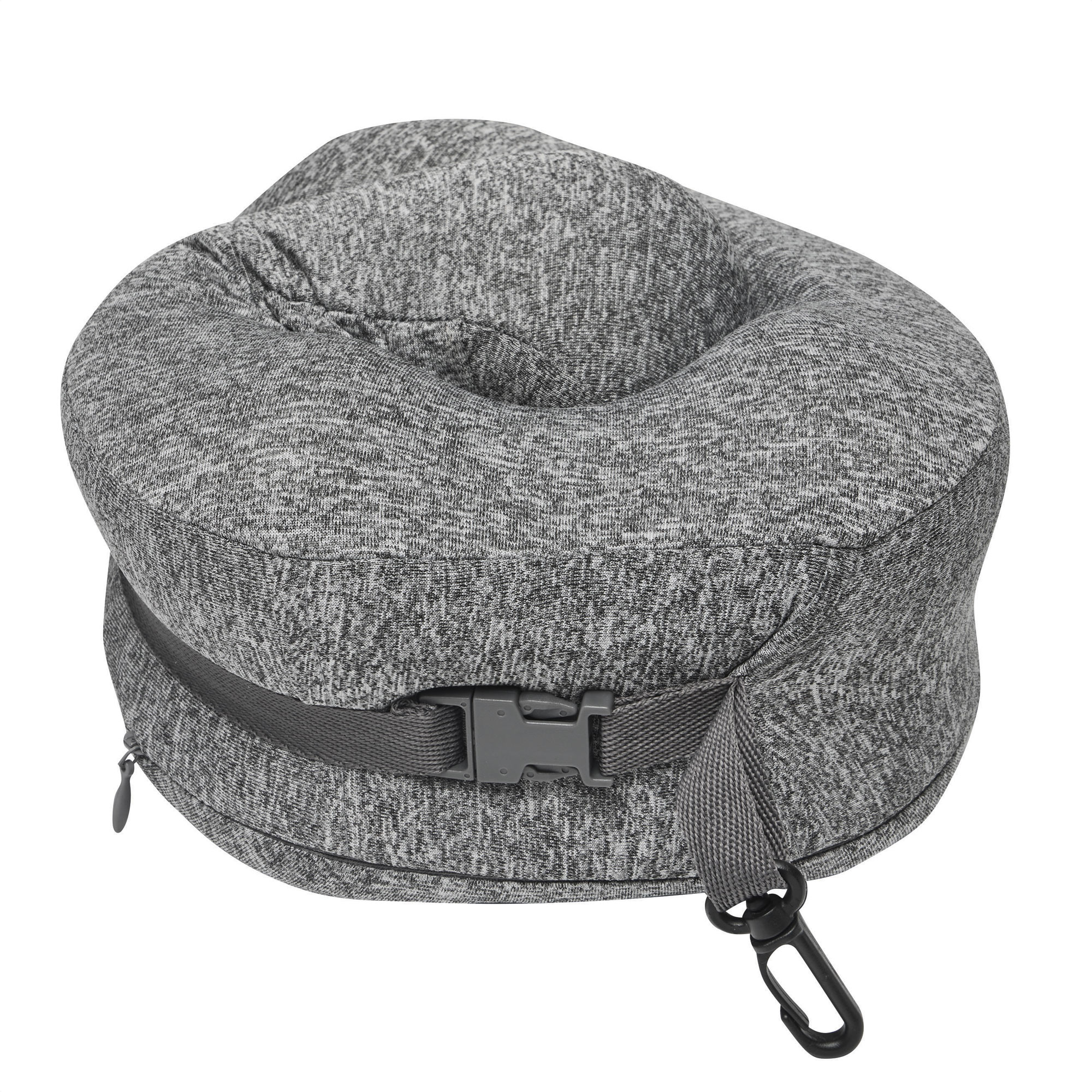 Almohada de viaje "REM" Almohada cervical. Funda extraible con cierre metálico y capucha incluida. Correas con cierre a presión y mosquetón plásticos para optimizar el guardado y traslado