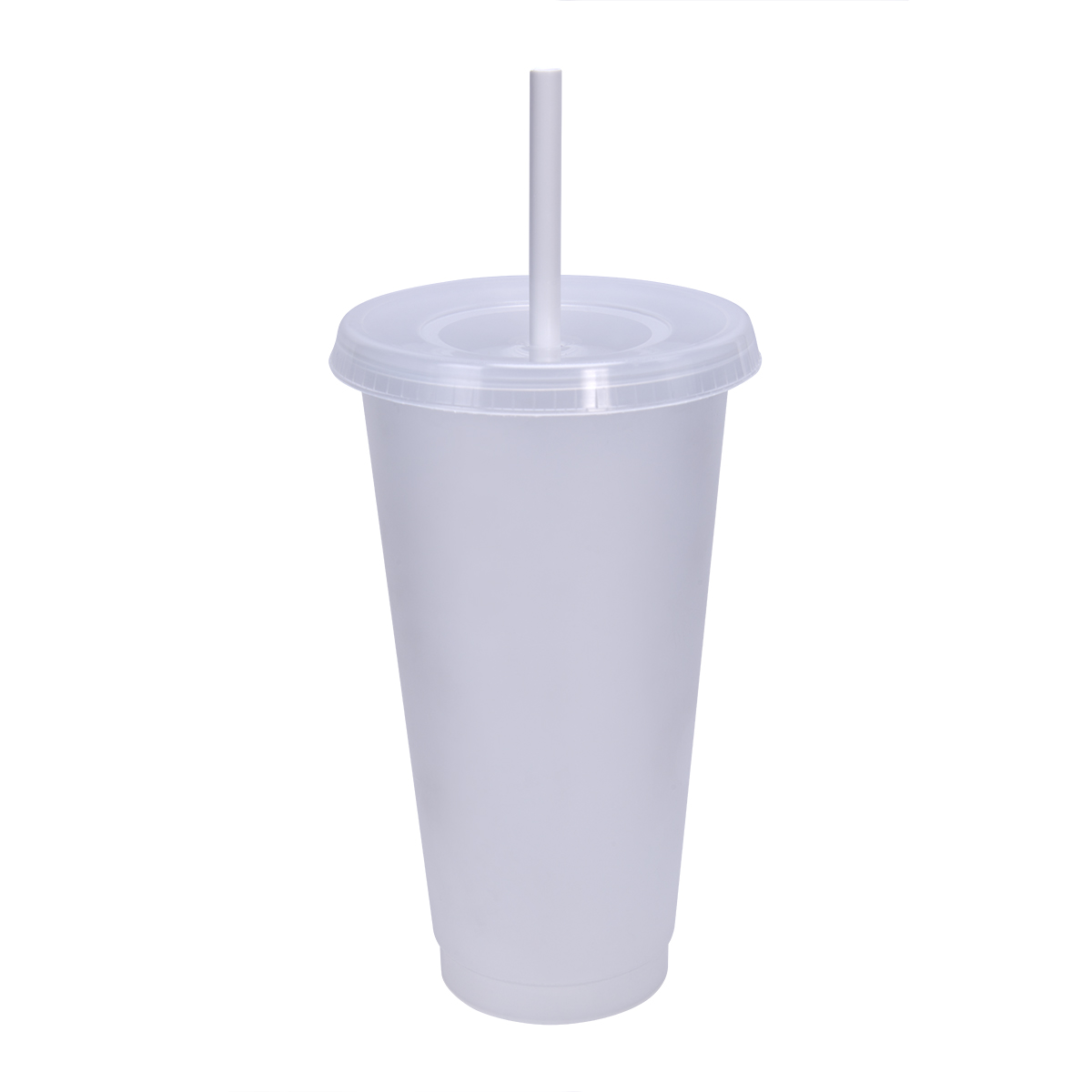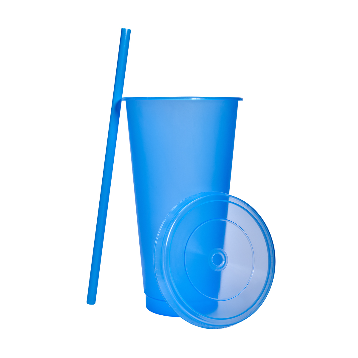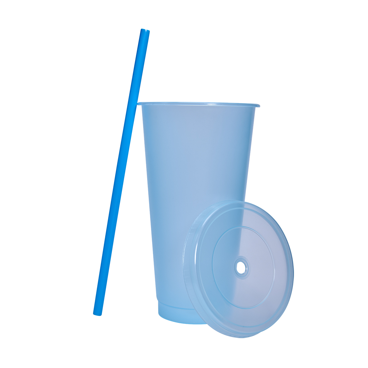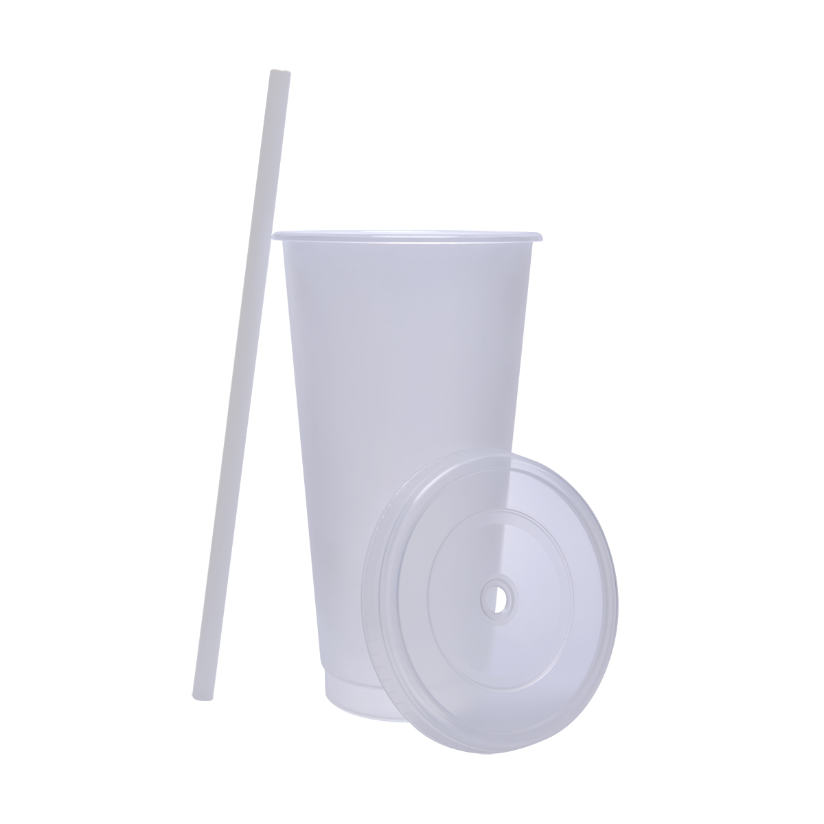 VASO JAS - Vaso de plástico con tapa push y popote. Capacidad 27 oz. Base de 6.4 cm de diámetro.