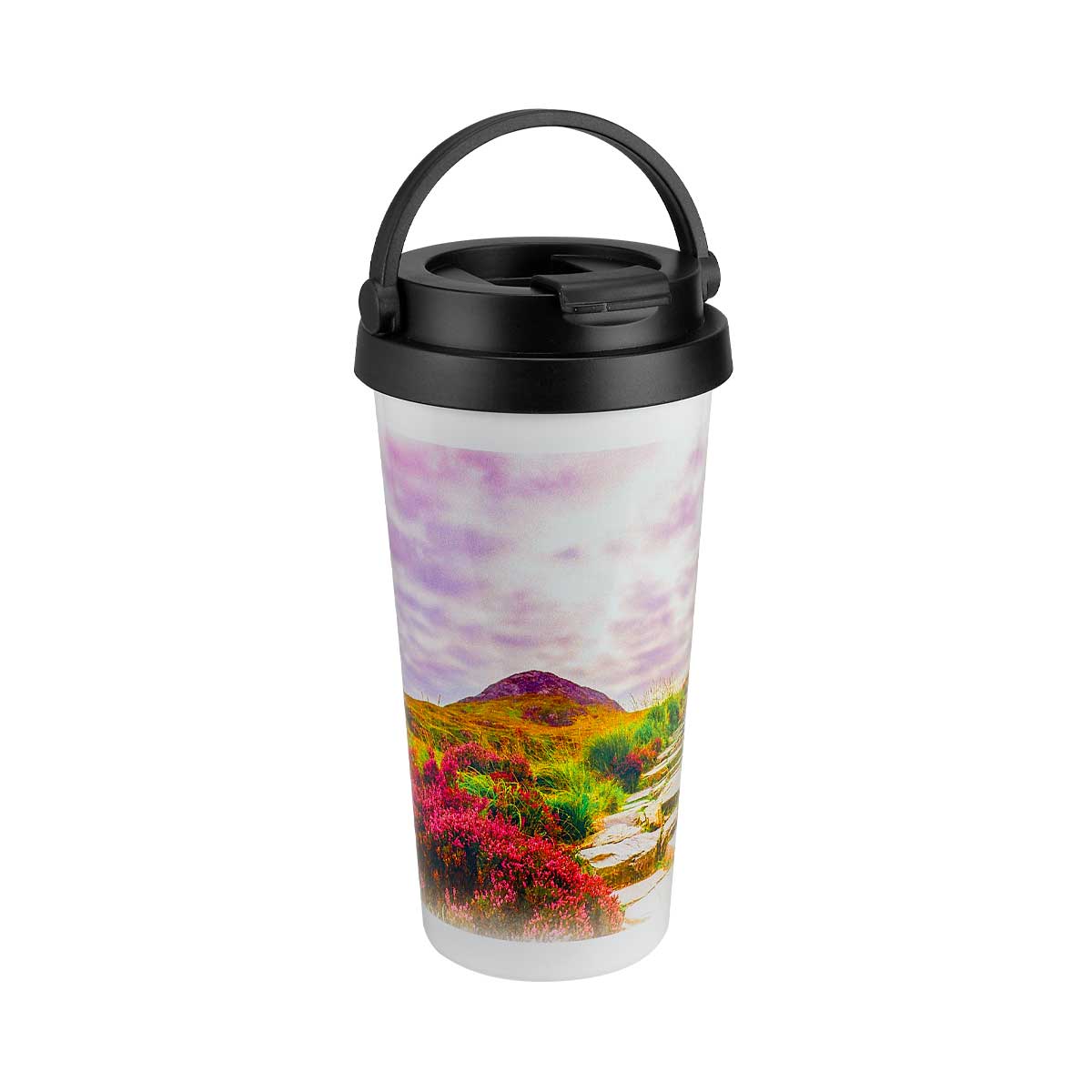 TERMO PARA SUBLIMAR HUSEY - Termo para sublimar doble pared. Cerrado al vacío. Pared interna y externa de acero inoxidable. Tapa de plástico con válvula de seguridad y asa plegable. Mantiene temperatura caliente 6 hrs y temperatura fría 8 hrs aproximadamente. Incluye caja individual.