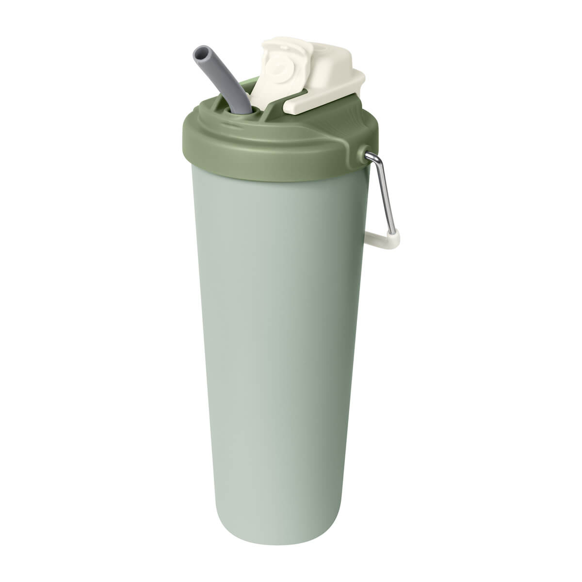 ISE Termo de doble pared de plástico con acabado wheat straw y tapa enroscable....