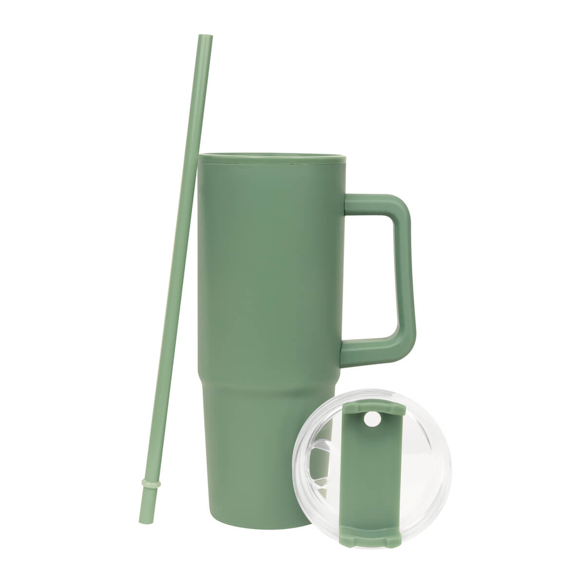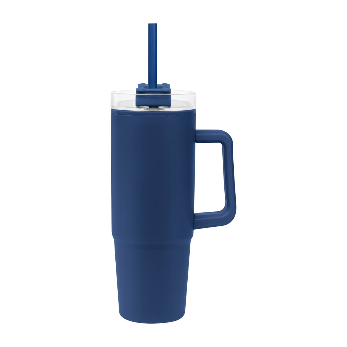 TERMO EDAN - De doble pared. Pared interna y externa de plástico. Tapa de plástico con cierre de rosca. Sobre tapa giratoria de plástico con opción para beber con popote o boquilla tradicional. Capacidad de 30 Oz. Base de 7 cm de diámetro. Incluye popote de plástico y caja individual.