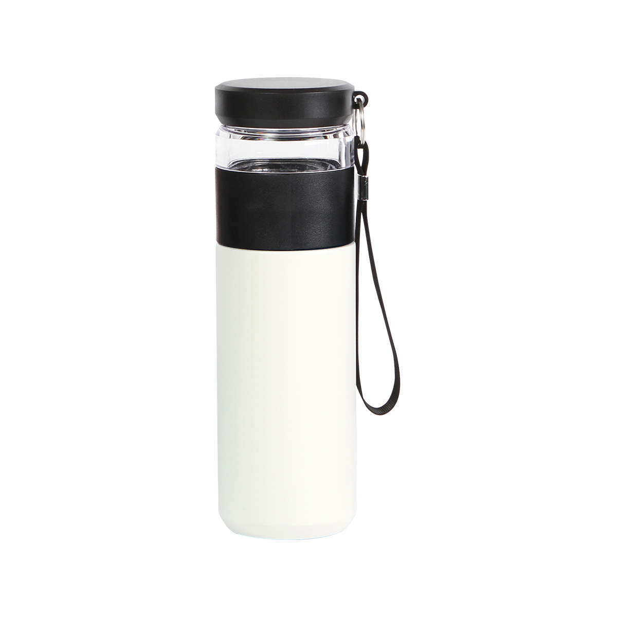 Termo Gallico. - Termo de acero inoxidable doble pared, con infusor de vidrio para separar el té o café del agua, rejilla coladora y correa de poliéster. Fabricado en materiales de grado alimenticio, mantiene bebidas frías o calientes por un largo tiempo. No usar en microondas. Capacidad de 500 ml. Incluye caja de cartón individual.