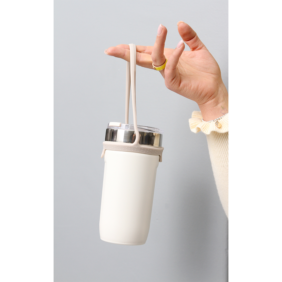 Termo Cariati. - Termo fabricado con doble pared de acero inoxidable, asa de silicona y tapa deslizable antiderrames. El asa de silicona es ideal para llevar tus bebidas a todos lados sin la preocupación de sufrir derrames. Capacidad de 480 ml.