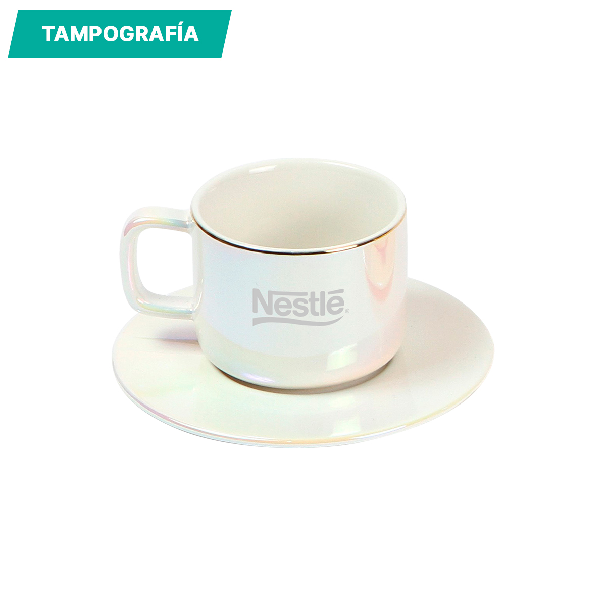 MATERIAL: PORCELANA MEDIDAS: Taza: 5.5x7 cm | Plato: 13 cm. (Diametro) | Cuchara: 12 cm. IMPRESION: Tampografía MED. EMPAQUE: 42.5x42.5x35 PESO EMPAQUE: 14.64 kg PIEZAS EMPAQUE: 36